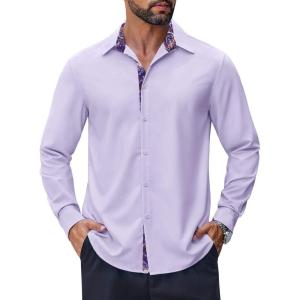 COOFANDY Men’s Long Sleeve Wrinkle Free Dress Shirts Inner Contrast Business Casual Button Down Shirt(Lilac)
