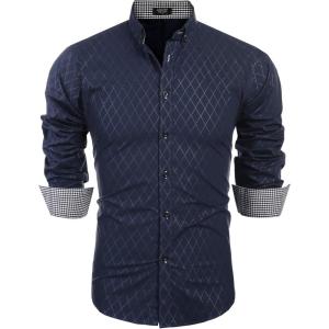 COOFANDY Men’s Long Sleeve Wrinkle Free Dress Shirts Inner Contrast Business Casual Button Down Shirt(Navy)