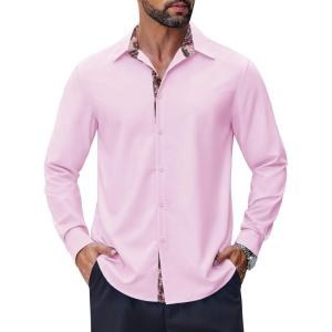 COOFANDY Men’s Long Sleeve Wrinkle Free Dress Shirts Inner Contrast Business Casual Button Down Shirt(Pink)