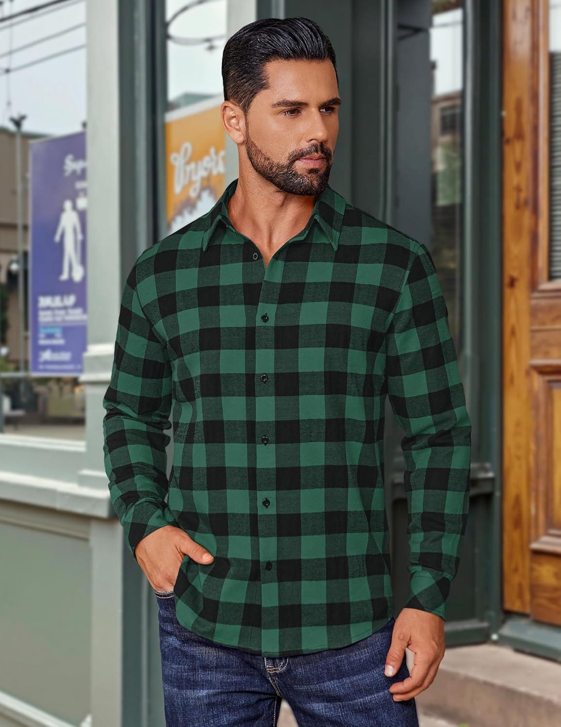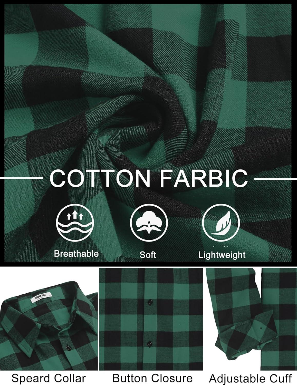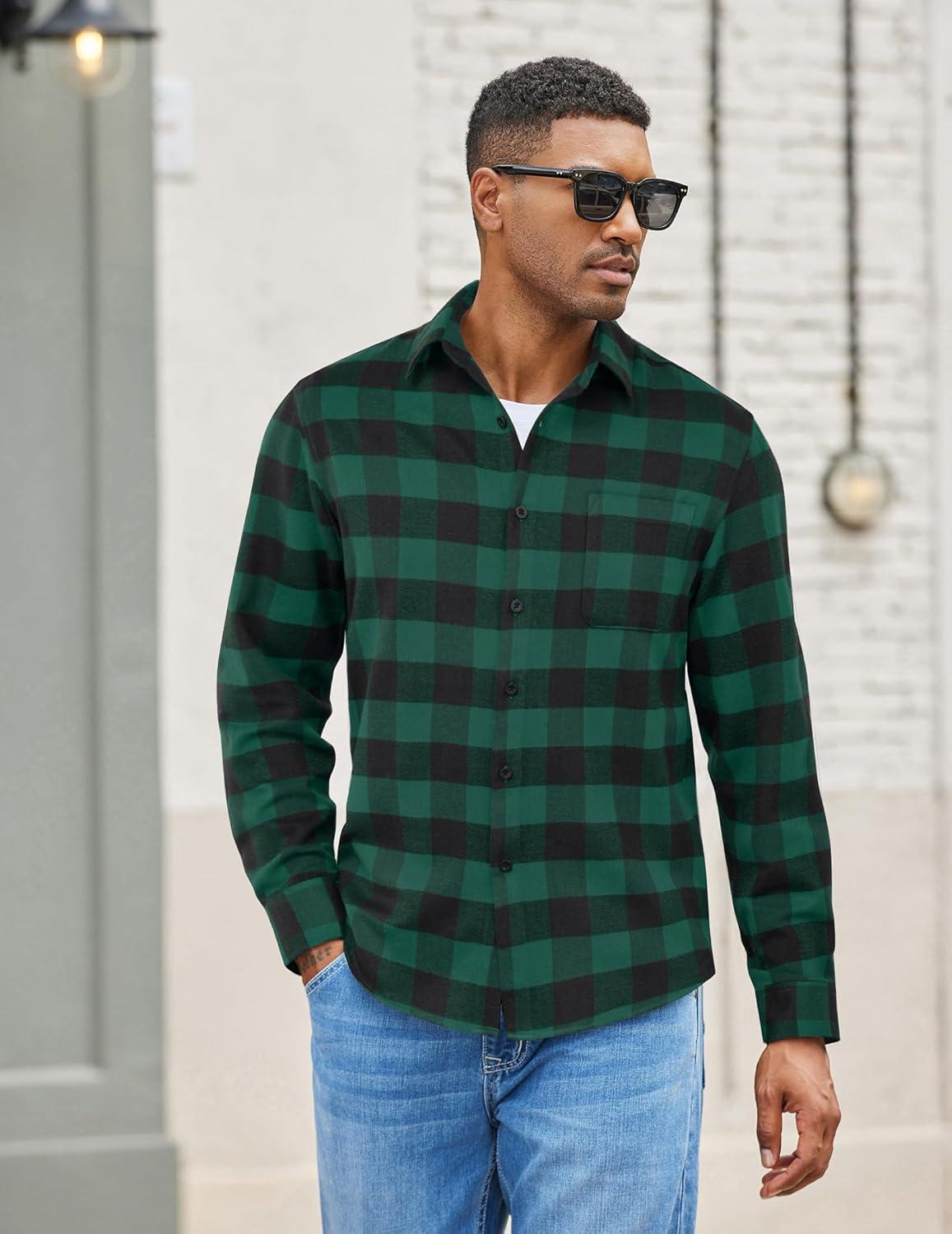 COOFANDY Mens Flannel Shirts Long Sleeve Plaid Button Down Shirts Casual Cotton Shirts(Green Checkered)