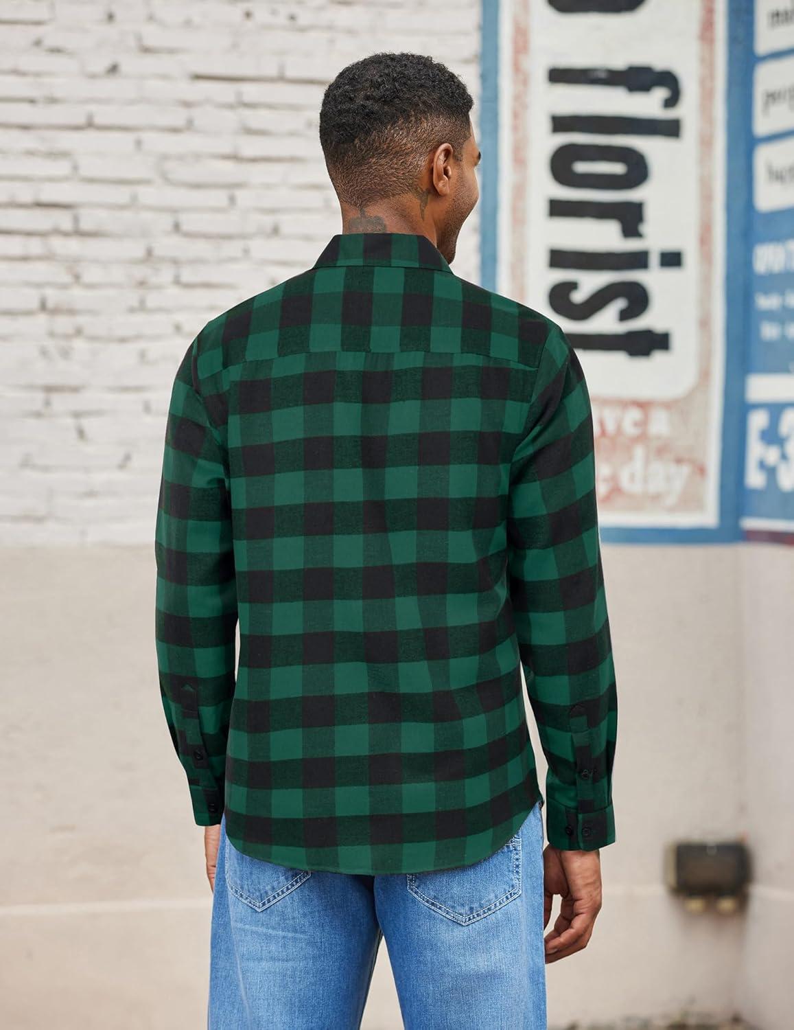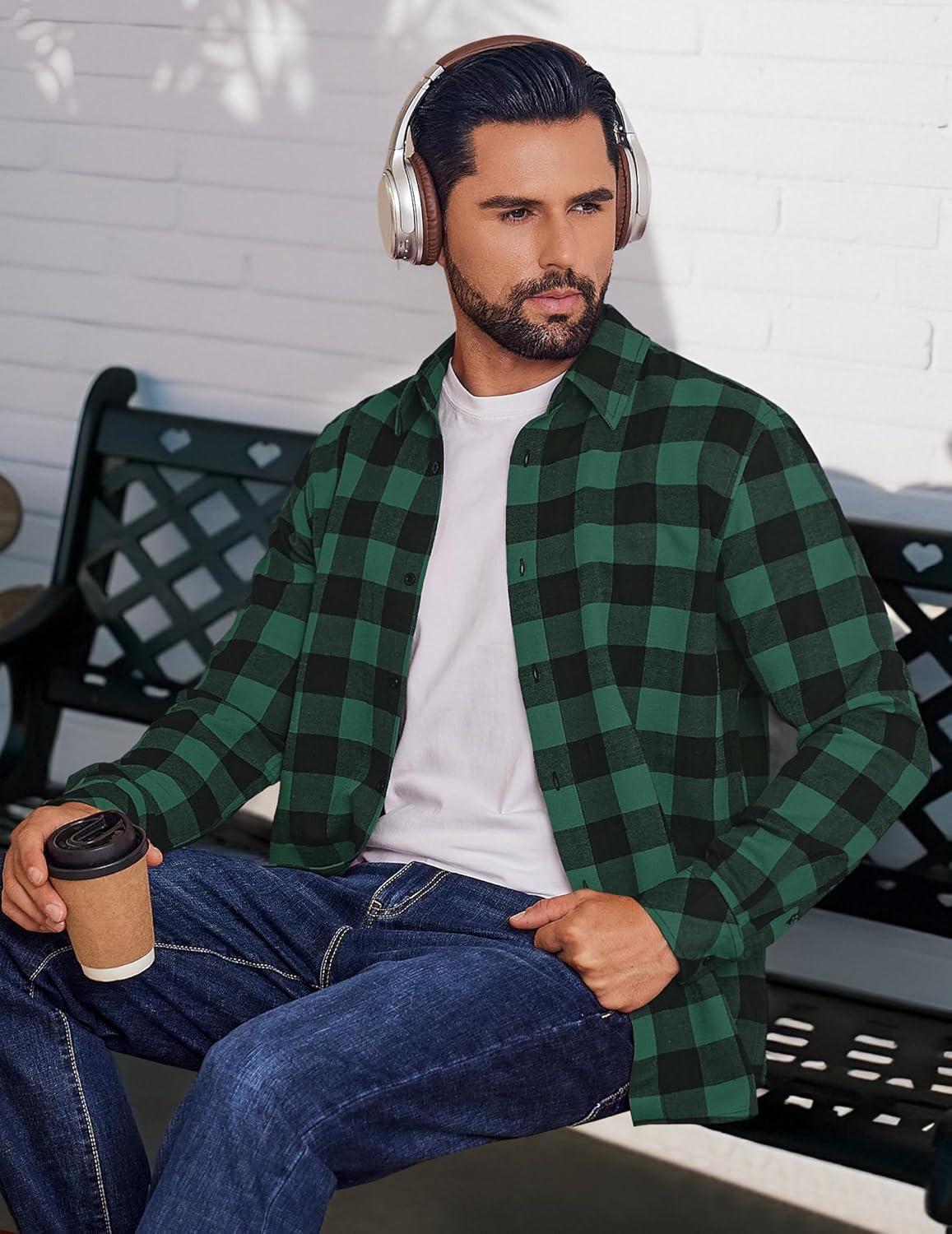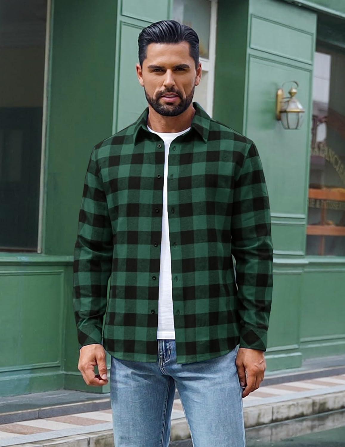 COOFANDY Mens Flannel Shirts Long Sleeve Plaid Button Down Shirts Casual Cotton Shirts(Green Checkered)