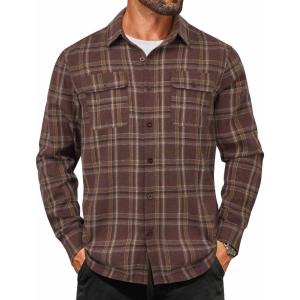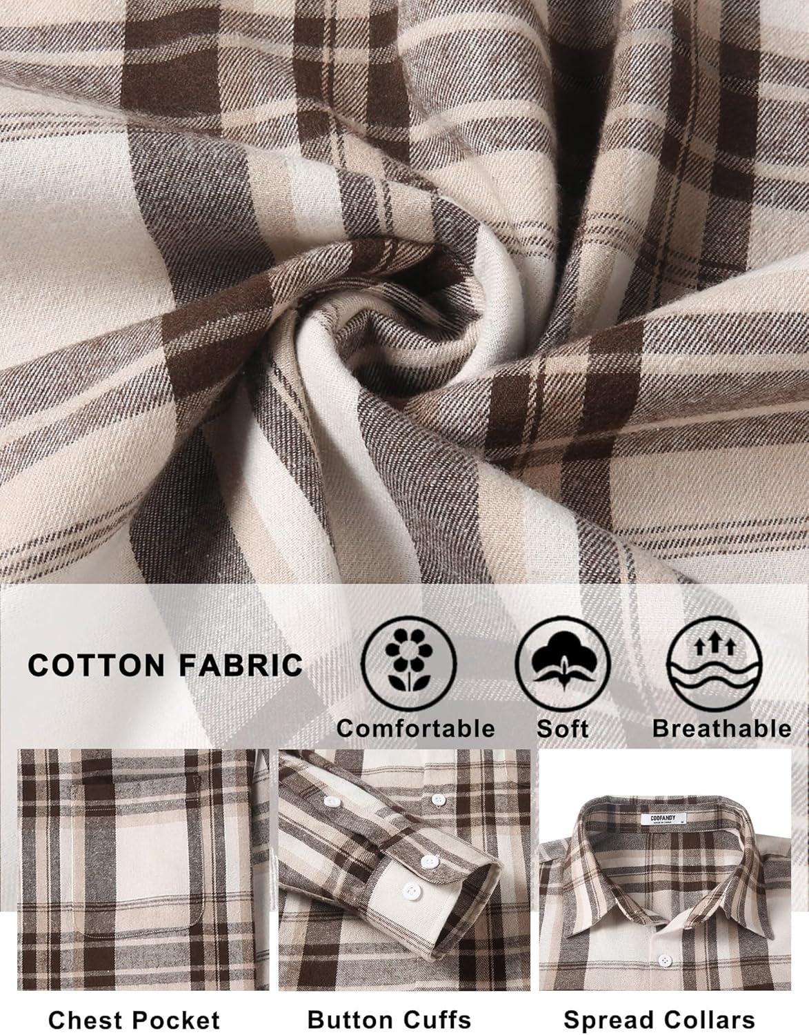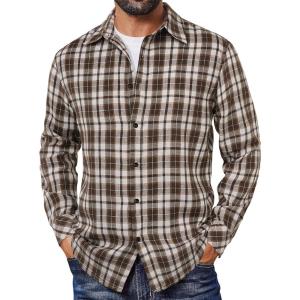 COOFANDY Mens Flannel Shirts Long Sleeve Plaid Button Down Shirt Cotton Casual Work Shirts with Pockets(Coffee)