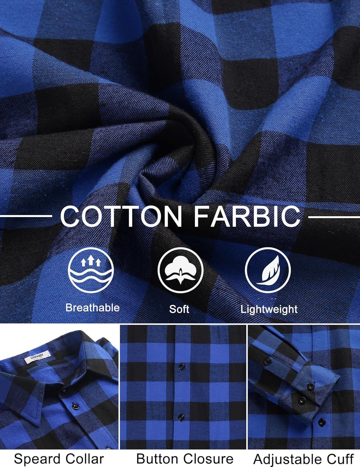 COOFANDY Mens Flannel Shirts Long Sleeve Plaid Button Down Shirts Casual Cotton Shirts(Blue Checkered)