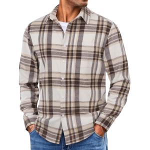 COOFANDY Mens Flannel Shirts Long Sleeve Plaid Button Down Shirts Casual Cotton Shirts(Khaki Plaid)