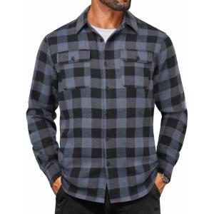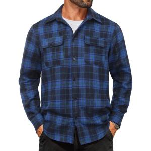 COOFANDY Mens Flannel Shirts Long Sleeve Plaid Button Down Shirt Cotton Casual Work Shirts with Pockets(Blue Black)