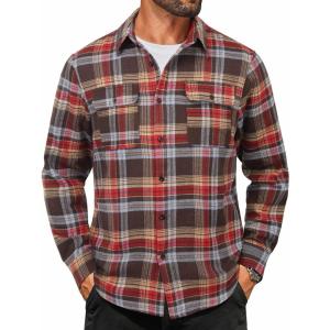 COOFANDY Mens Flannel Shirts Long Sleeve Plaid Button Down Shirt Cotton Casual Work Shirts with Pockets(Brown Red)