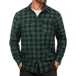 COOFANDY Mens Flannel Shirts Long Sleeve Thermal Button Down Shirt Shacket Lightweight Jacket(Green)