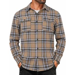 COOFANDY Mens Flannel Shirts Long Sleeve Thermal Button Down Shirt Shacket Lightweight Jacket(Khaki)
