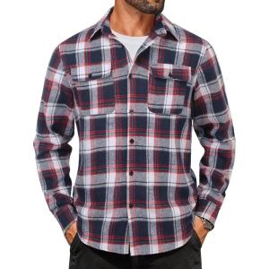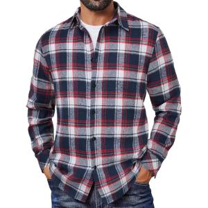 COOFANDY Mens Flannel Shirts Long Sleeve Plaid Button Down Shirt Cotton Casual Work Shirts with Pockets(Navy Red White)