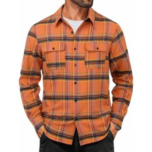 COOFANDY Mens Flannel Shirts Long Sleeve Plaid Button Down Shirt Cotton Casual Work Shirts with Pockets(Orange)