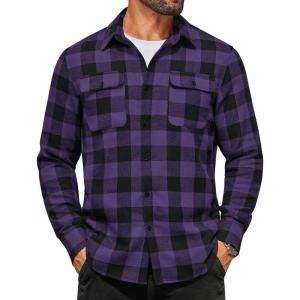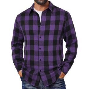 COOFANDY Mens Flannel Shirts Long Sleeve Plaid Button Down Shirts Casual Cotton Shirts(Purple)