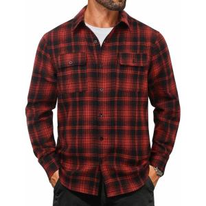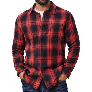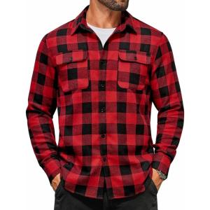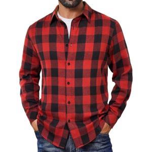 COOFANDY Mens Flannel Shirts Long Sleeve Plaid Button Down Shirts Casual Cotton Shirts(Red/Black)