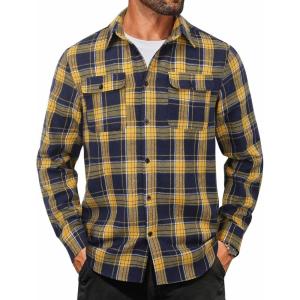 COOFANDY Mens Flannel Shirts Long Sleeve Plaid Button Down Shirt Cotton Casual Work Shirts with Pockets(Yellow Navy)