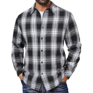 COOFANDY Mens Flannel Shirts Long Sleeve Plaid Button Down Shirt Cotton Casual Work Shirts with Pockets(Black White)