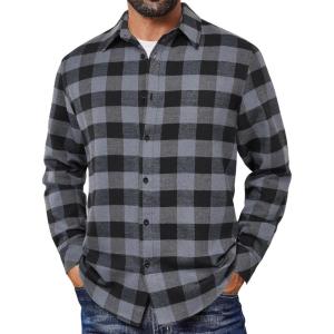 COOFANDY Mens Flannel Shirts Long Sleeve Plaid Button Down Shirt Cotton Casual Work Shirts with Pockets(Grey Black)