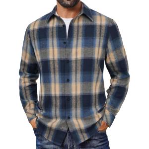 COOFANDY Mens Flannel Shirts Long Sleeve Plaid Button Down Shirts Casual Cotton Shirts(Khaki/Blue)