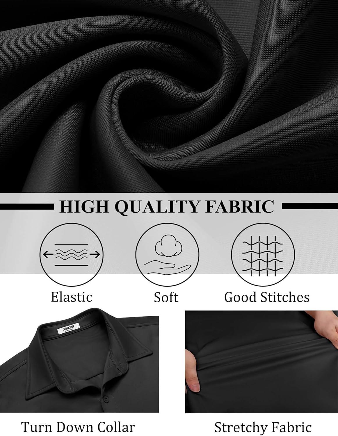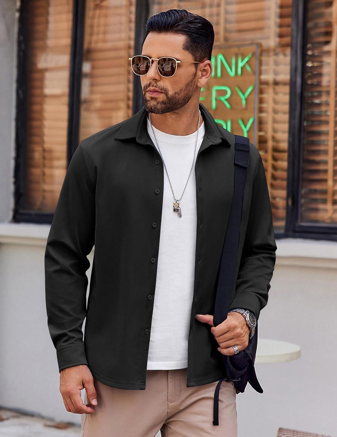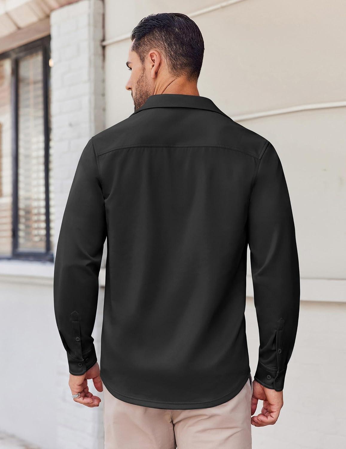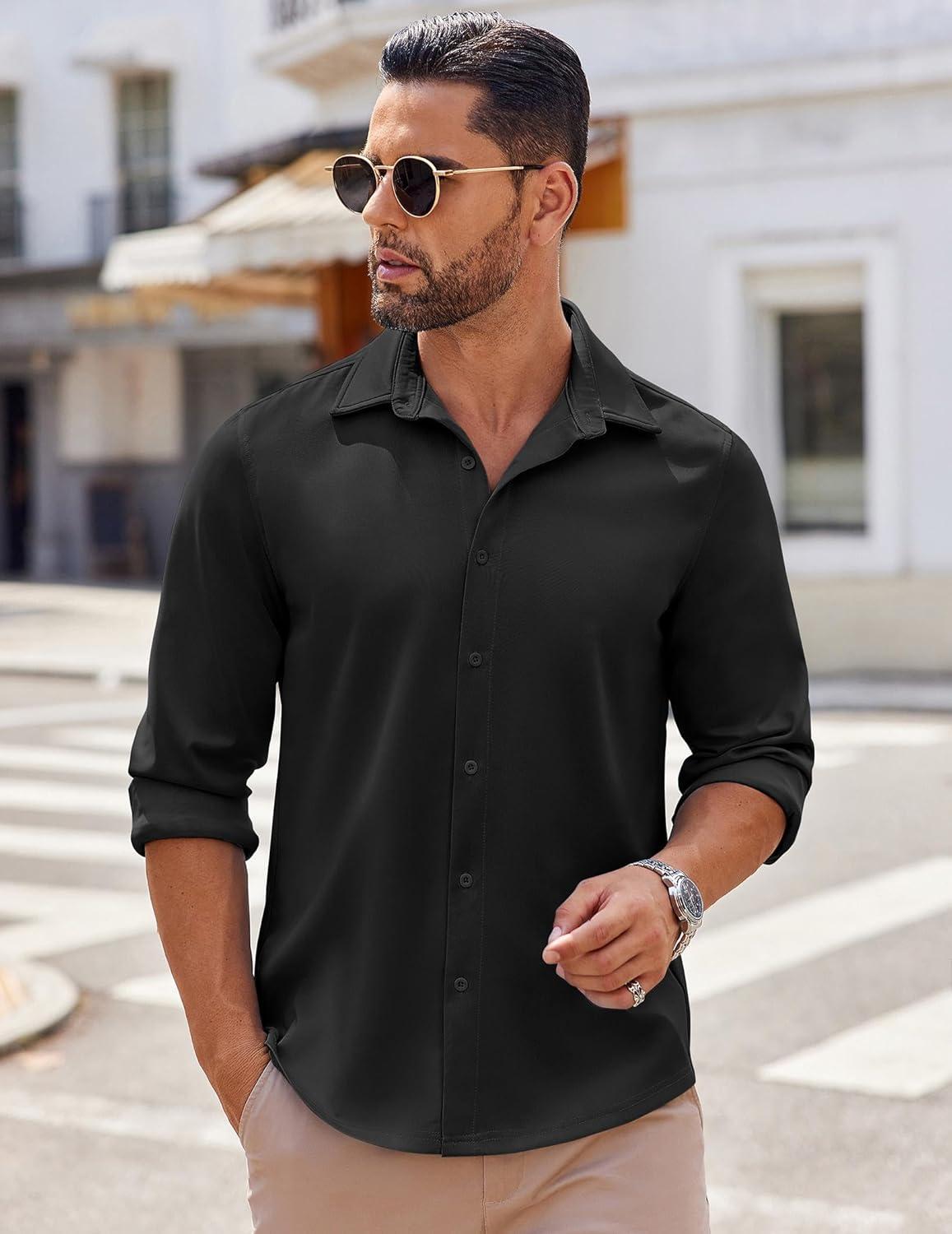 COOFANDY Mens Long Sleeve Button Down Shirts Casual Untucked Shirts Stretch Shirts(Black)