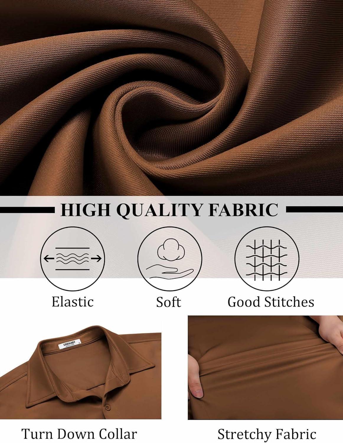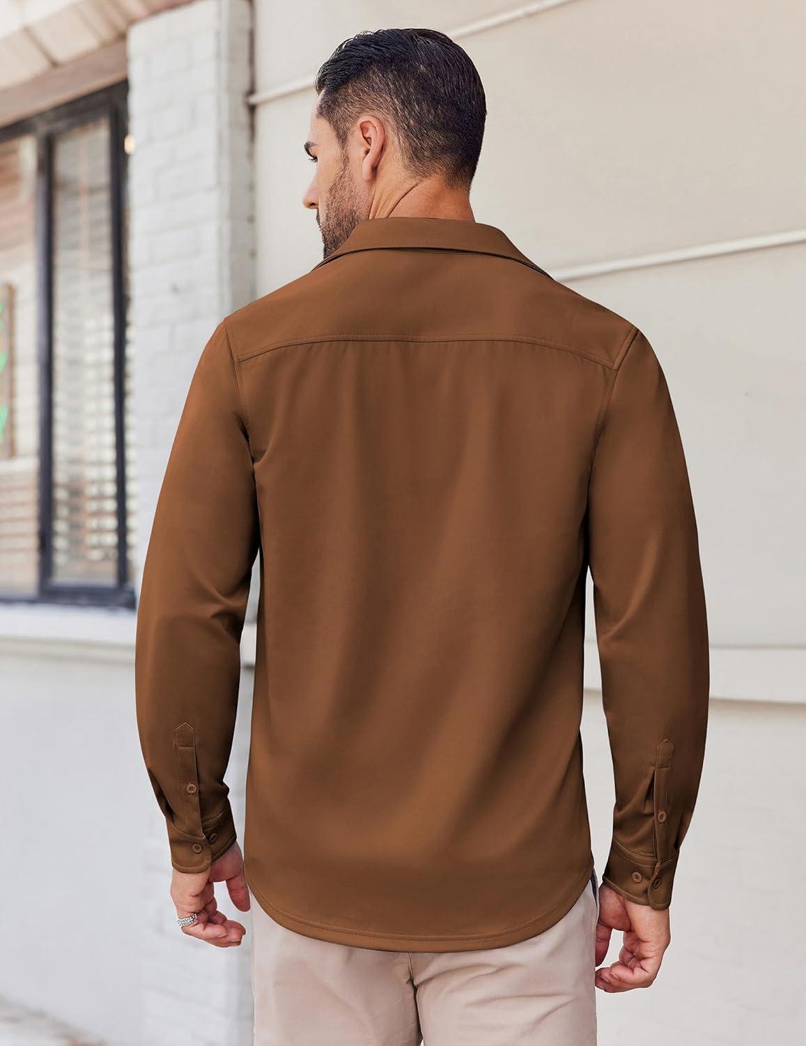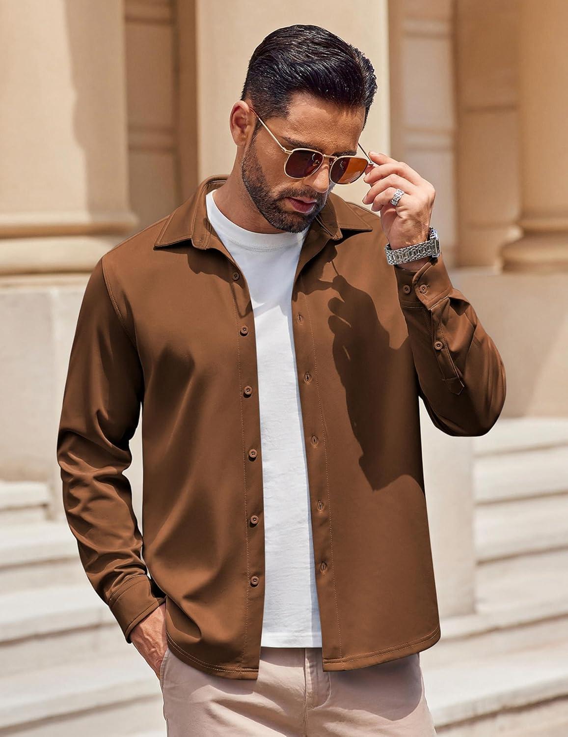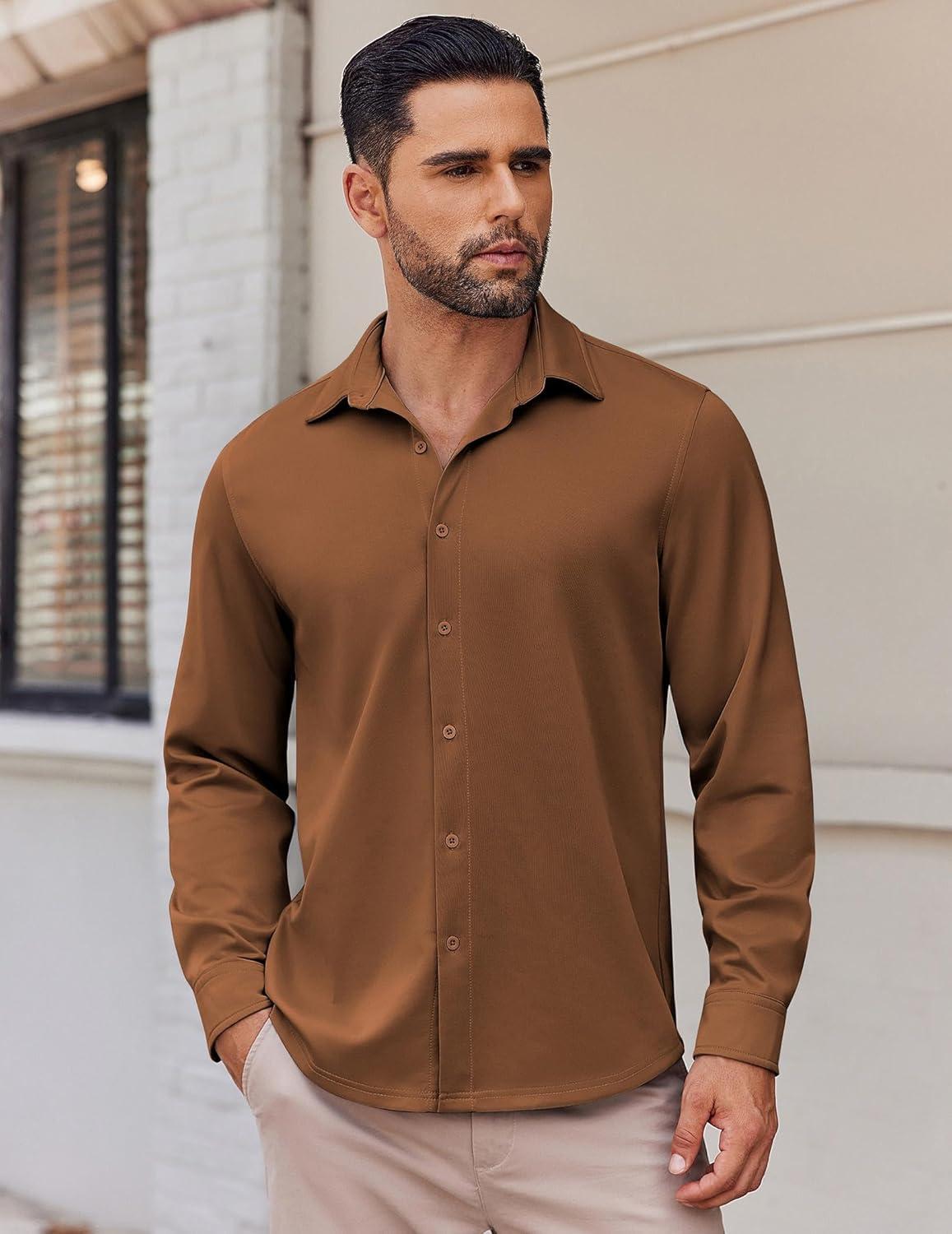 COOFANDY Mens Long Sleeve Button Down Shirts Casual Untucked Shirts Stretch Shirts(Brown)