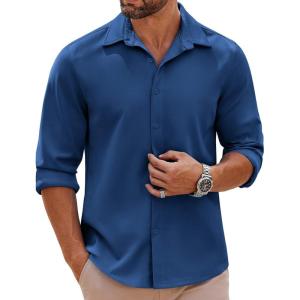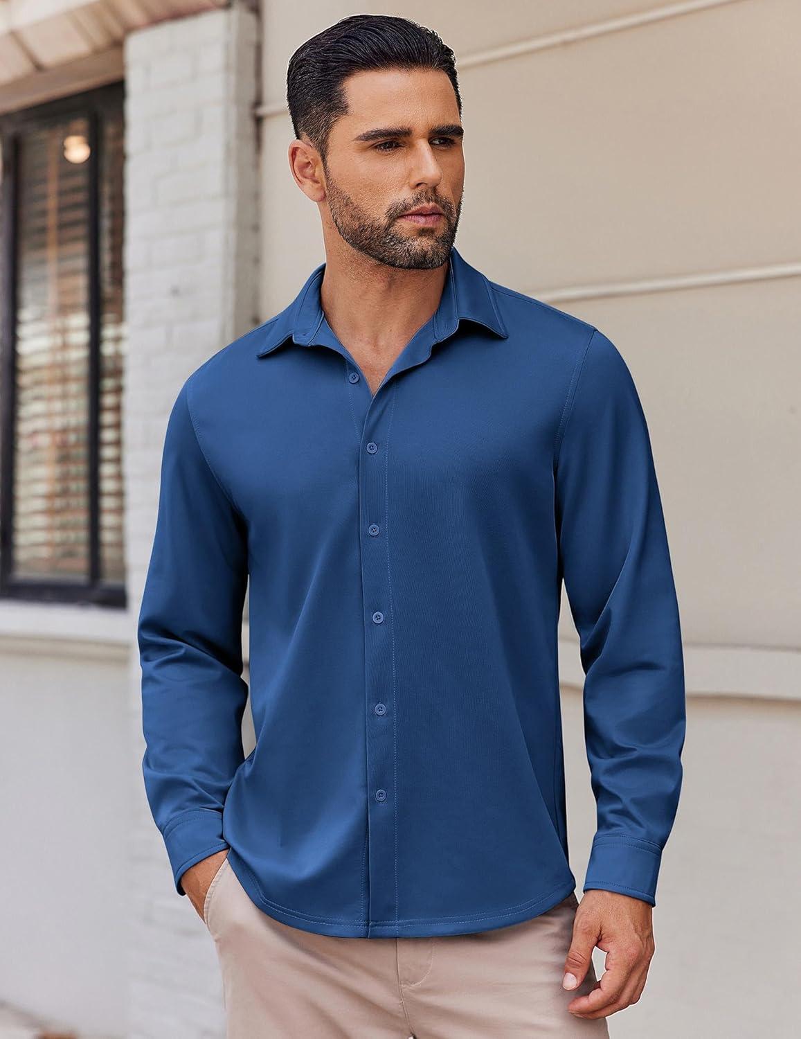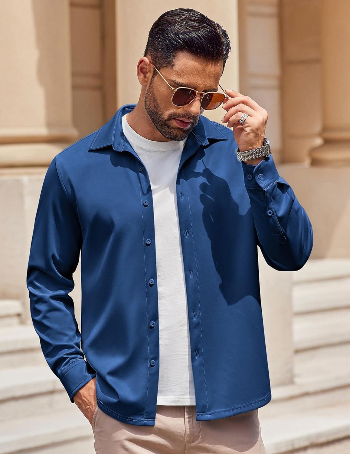 COOFANDY Mens Long Sleeve Button Down Shirts Wrinkle Free Untucked Shirts Casual Dress Shirt for Men(Blue)