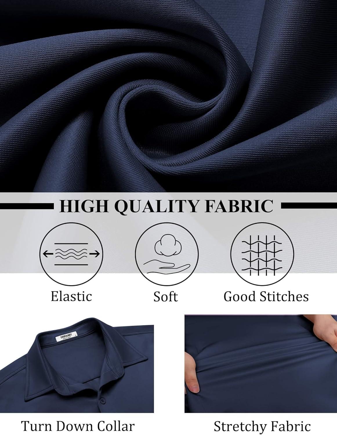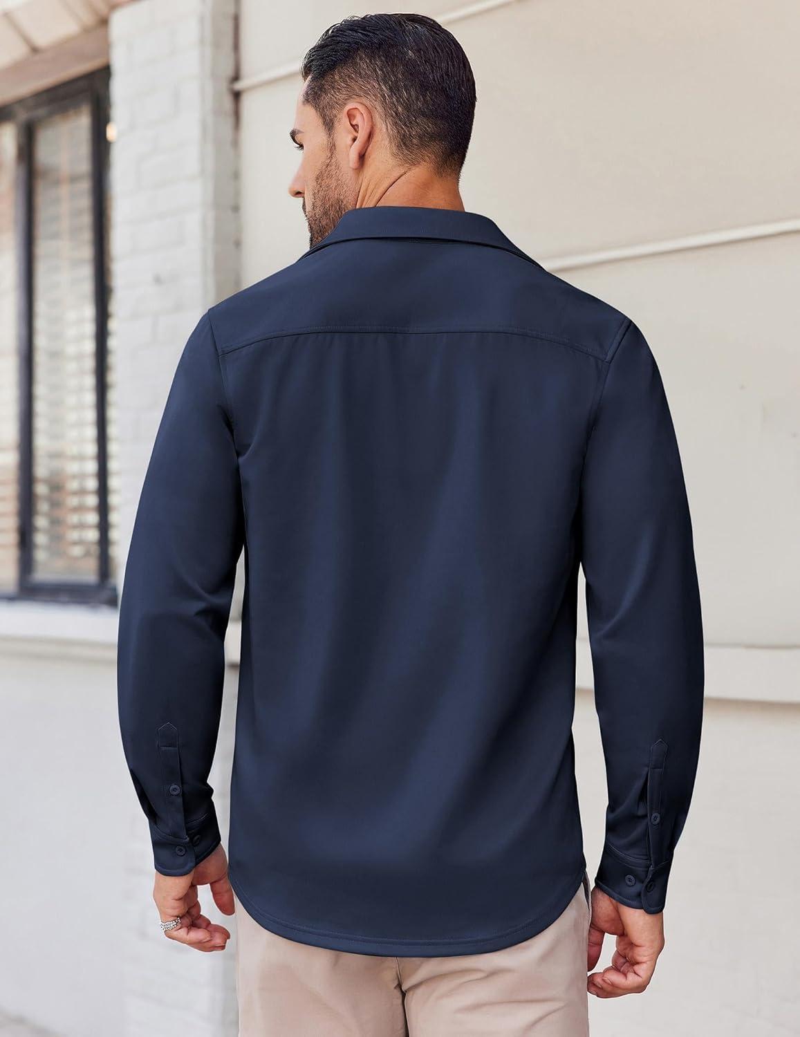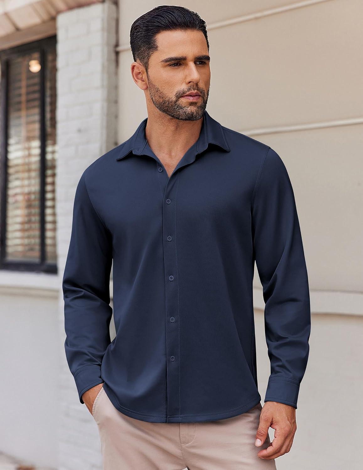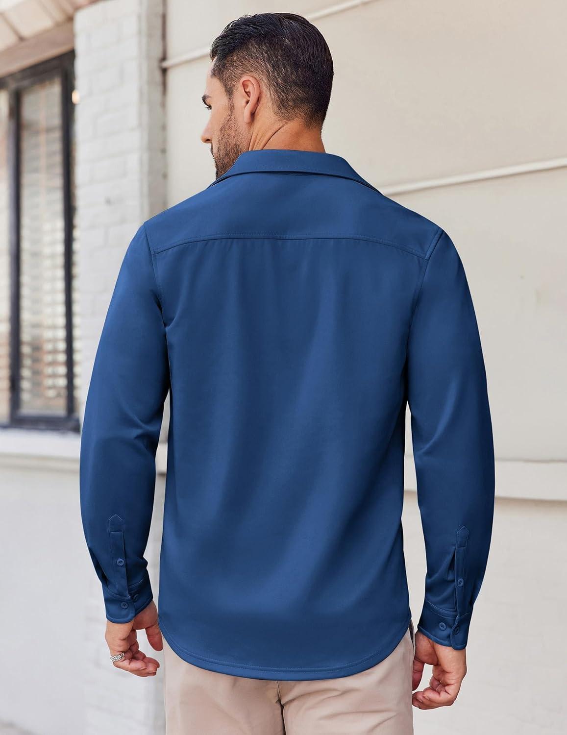 COOFANDY Mens Long Sleeve Button Down Shirts Casual Untucked Shirts Stretch Shirts(Dark Blue)