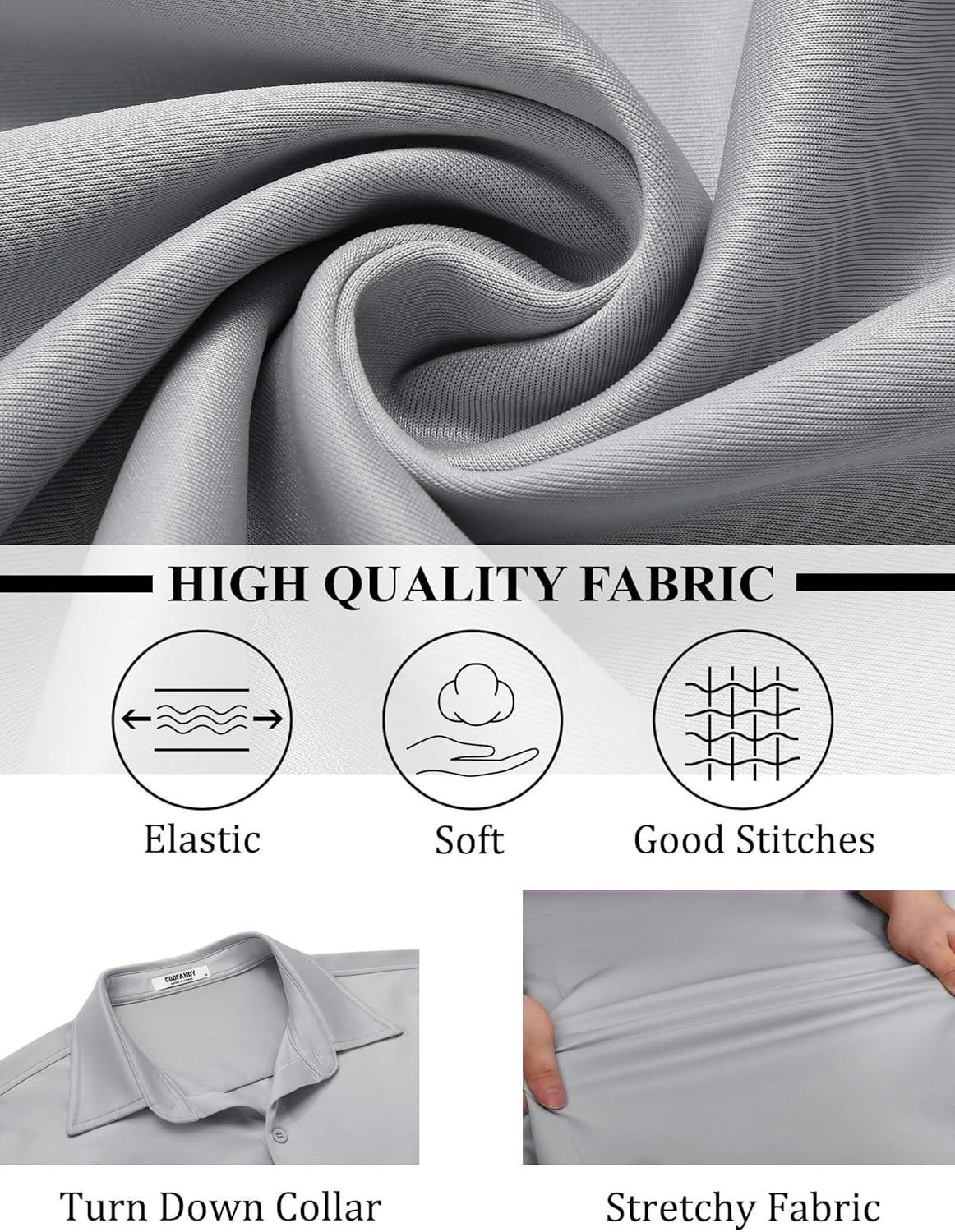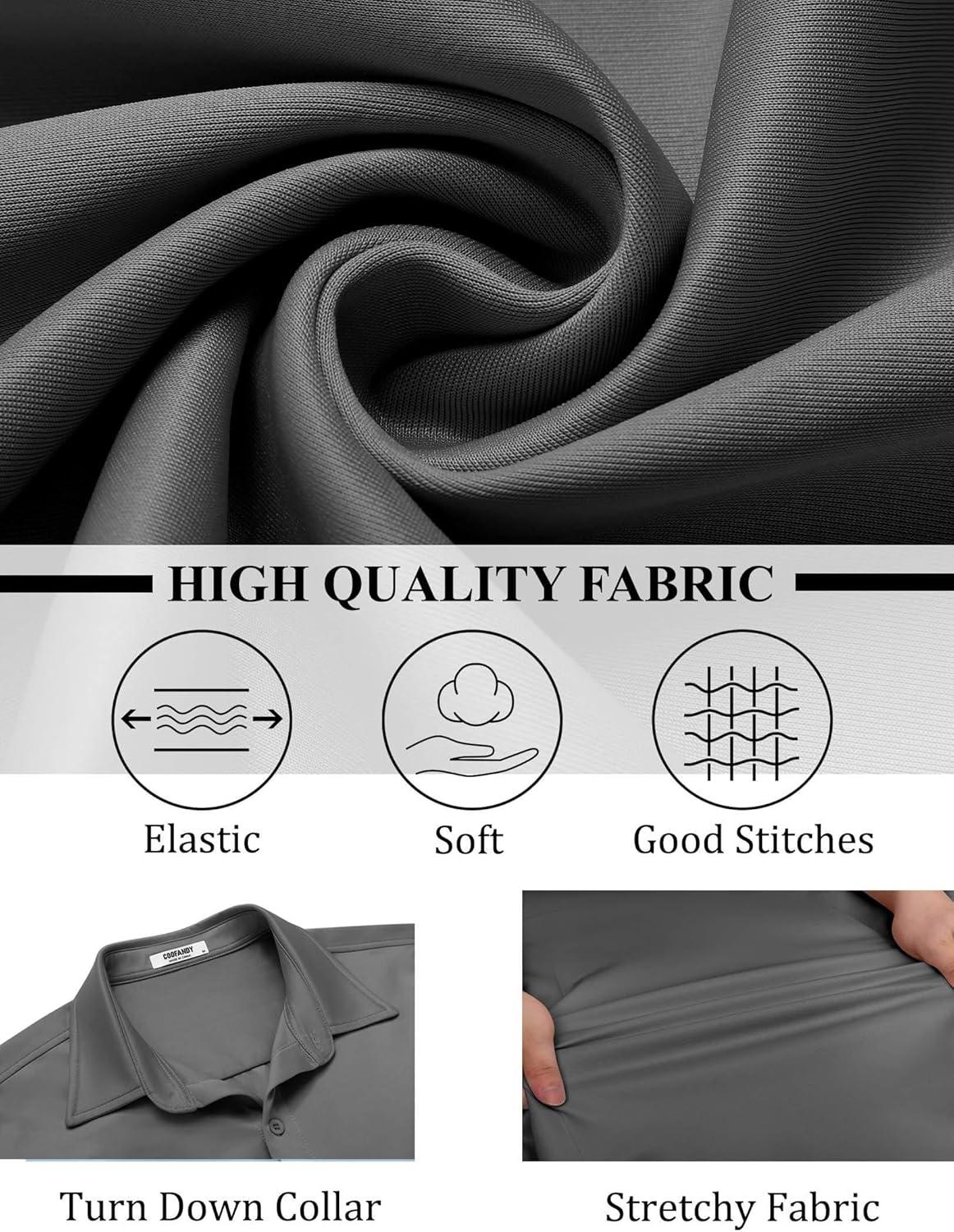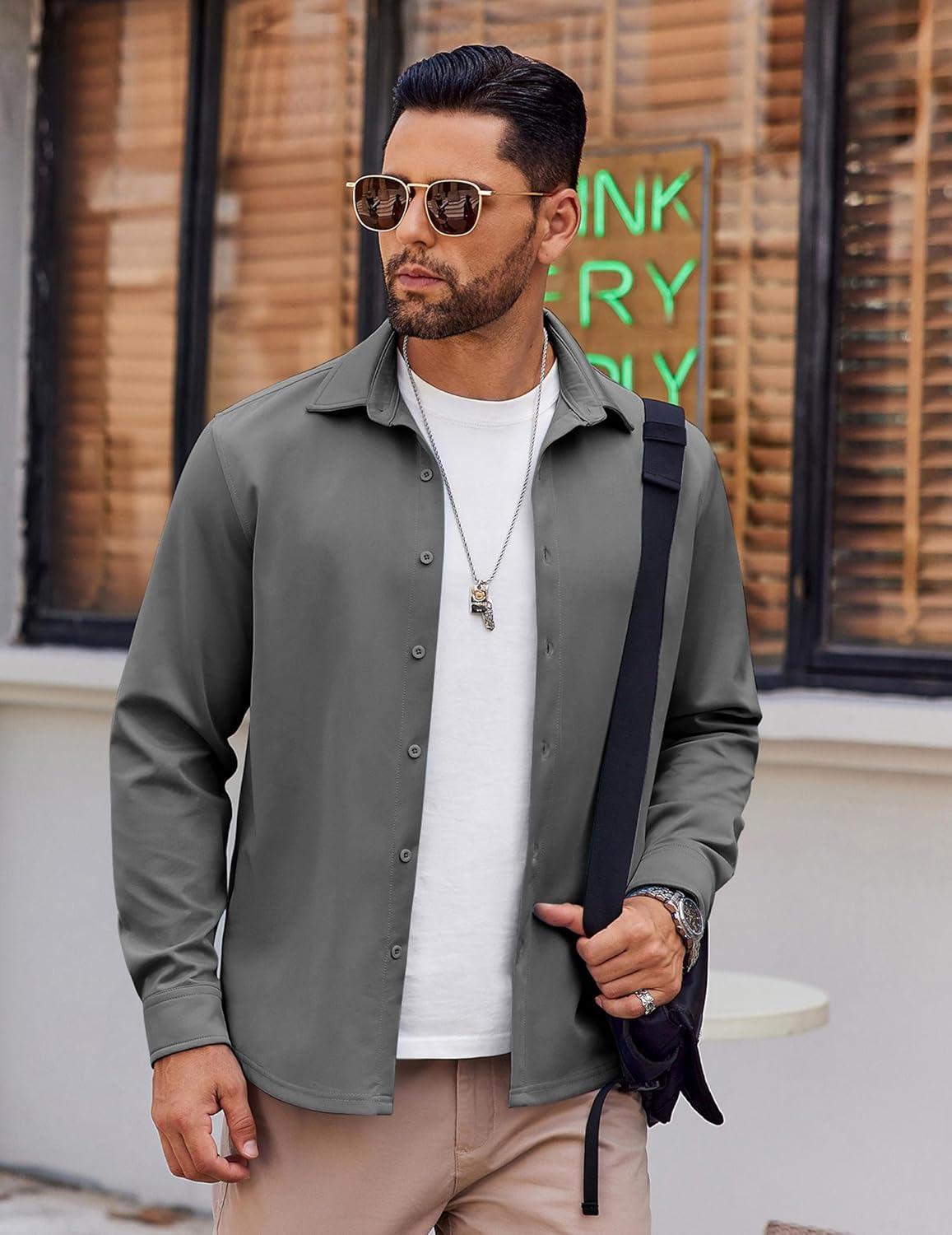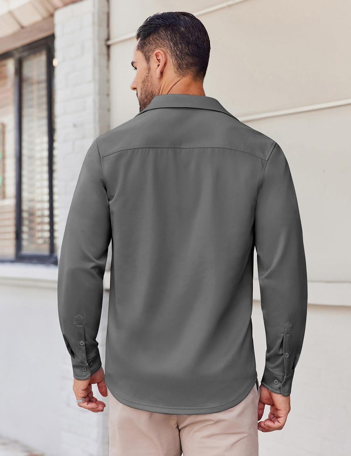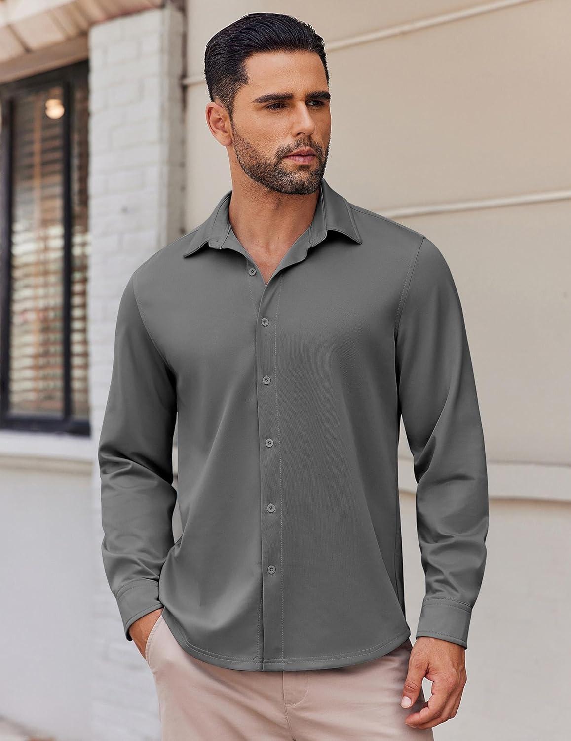 COOFANDY Mens Long Sleeve Button Down Shirts Casual Untucked Shirts Stretch Shirts(Grey)