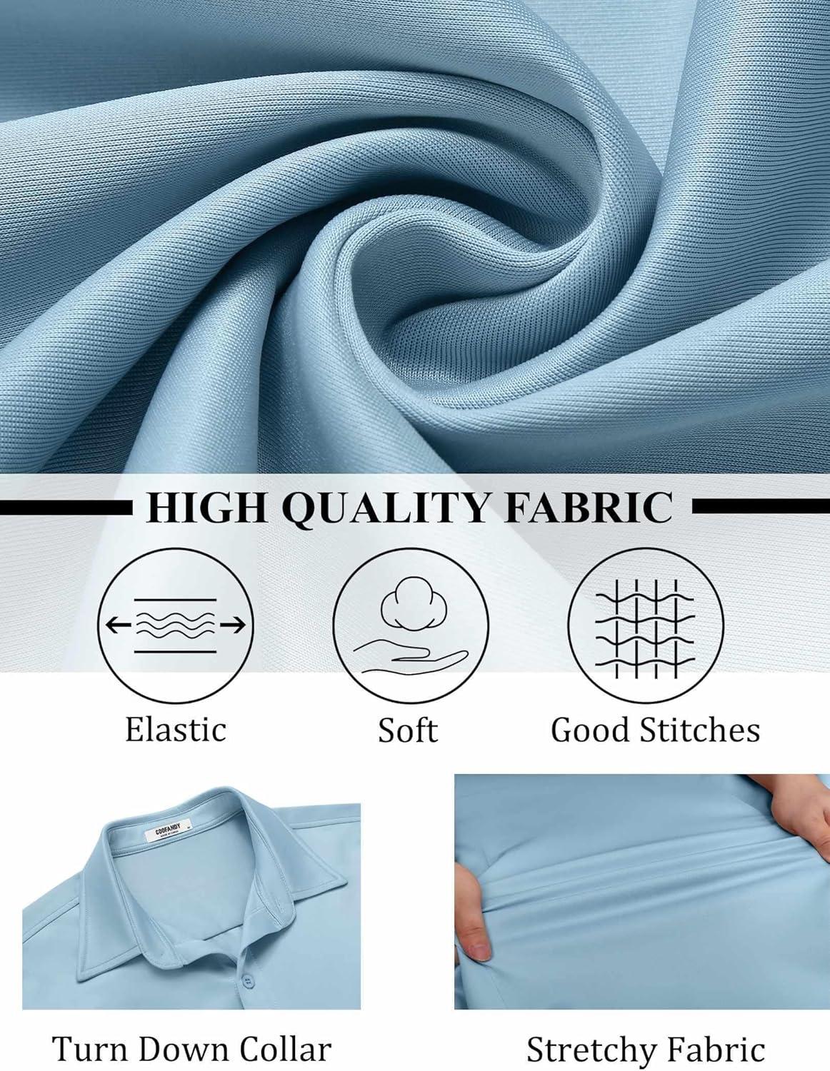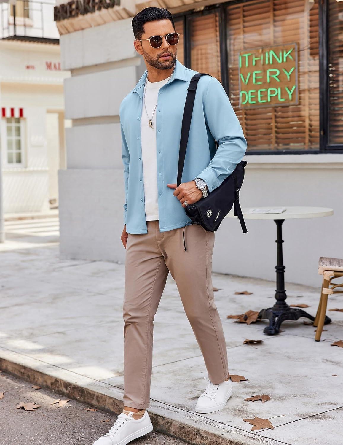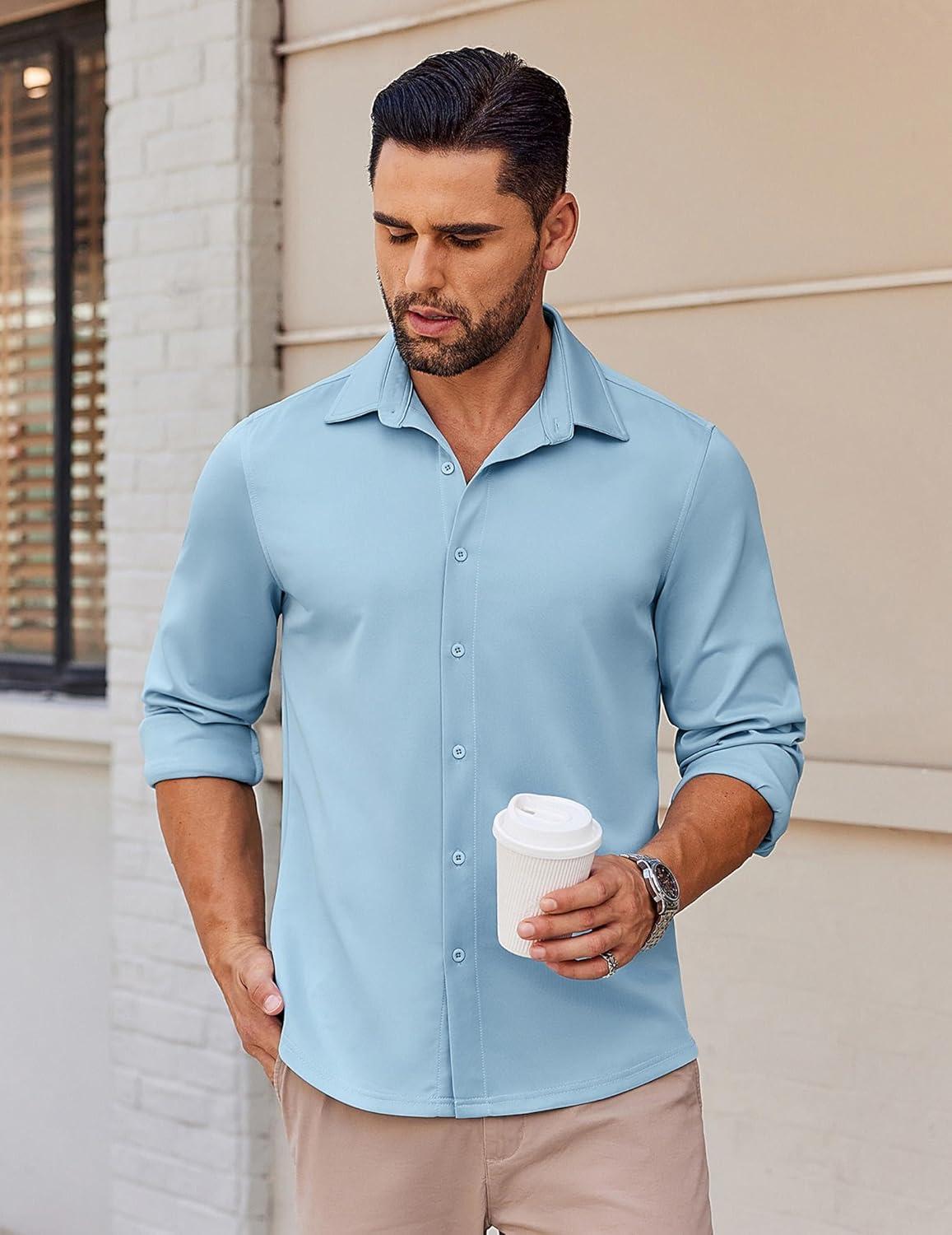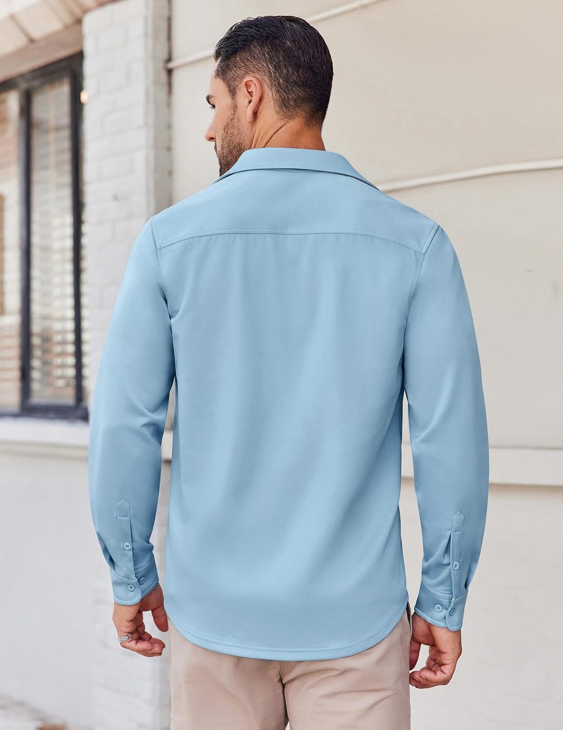 COOFANDY Mens Long Sleeve Button Down Shirts Casual Untucked Shirts Stretch Shirts(Light Blue)