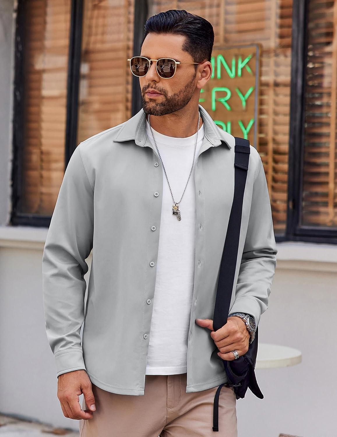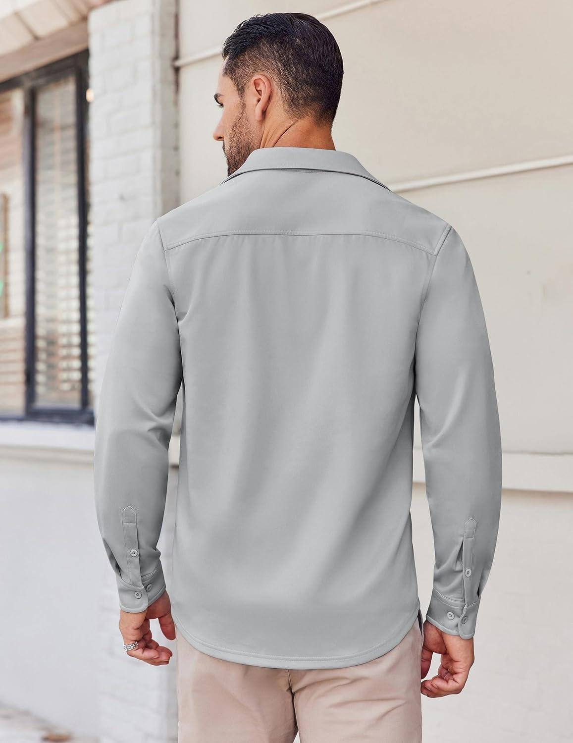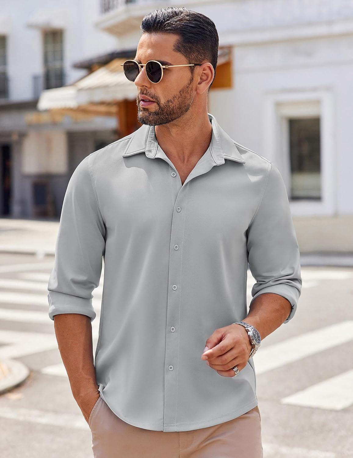 COOFANDY Mens Long Sleeve Button Down Shirts Casual Untucked Shirts Stretch Shirts(Light Grey)