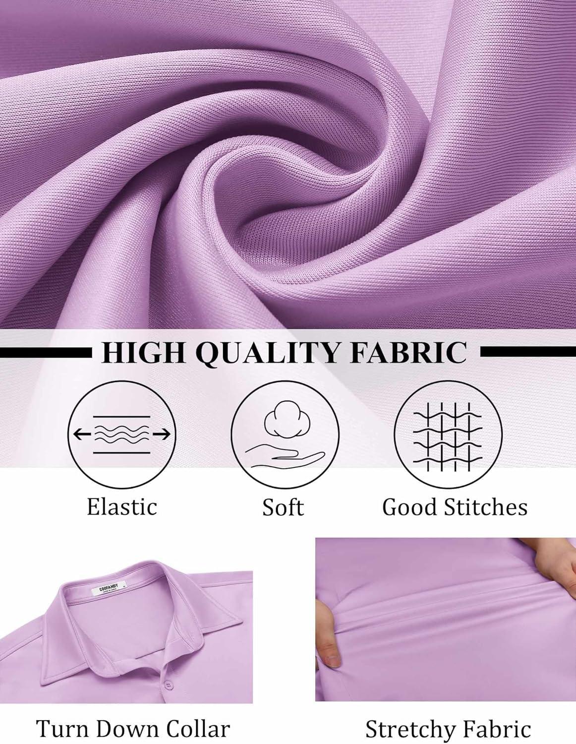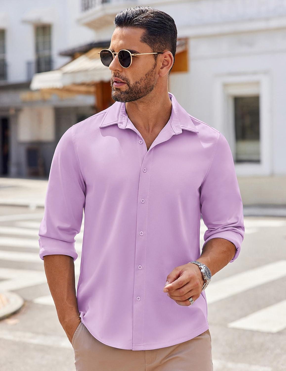 COOFANDY Mens Long Sleeve Button Down Shirts Casual Untucked Shirts Stretch Shirts(Light Purple)