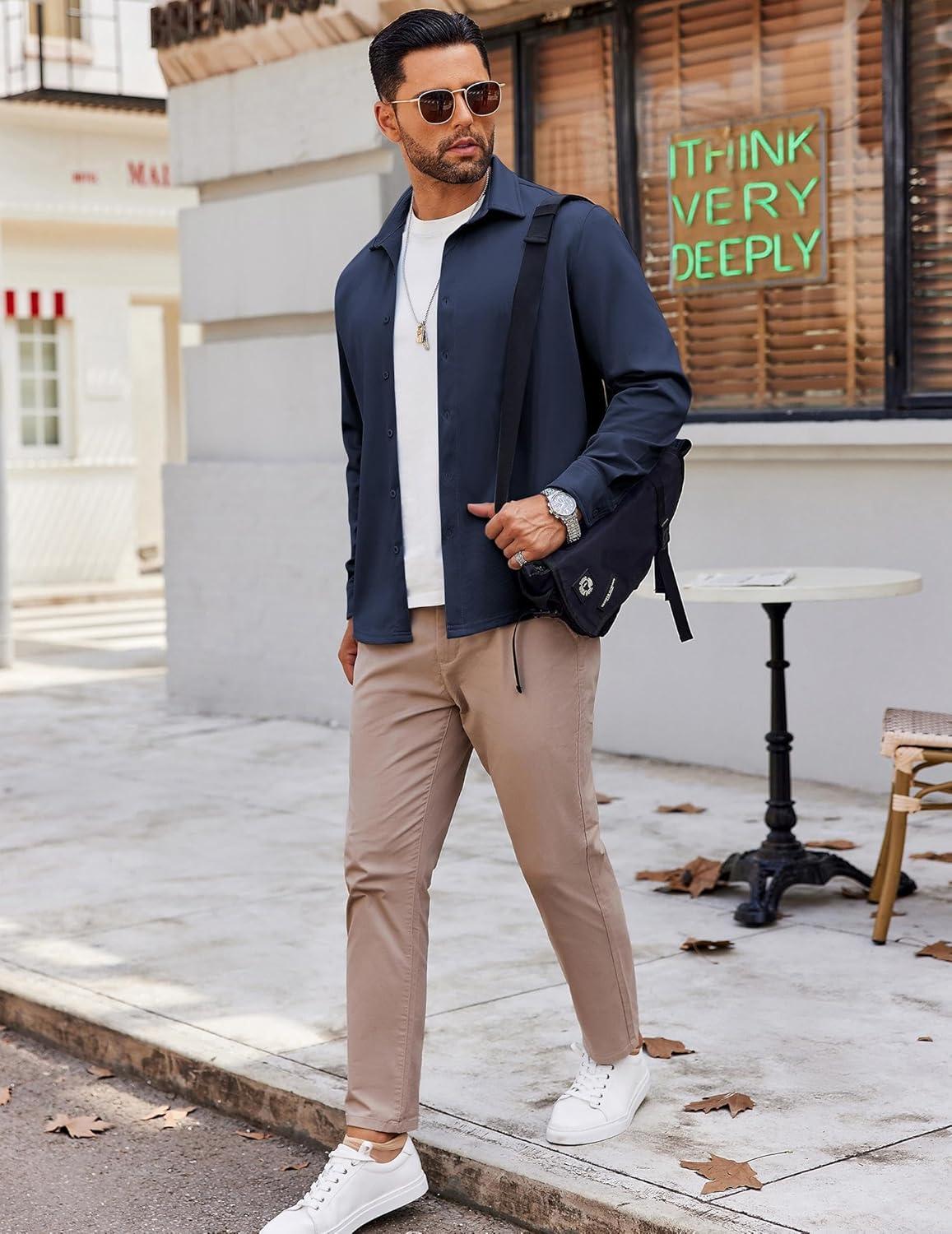 COOFANDY Mens Long Sleeve Button Down Shirts Casual Untucked Shirts Stretch Shirts(Khaki)