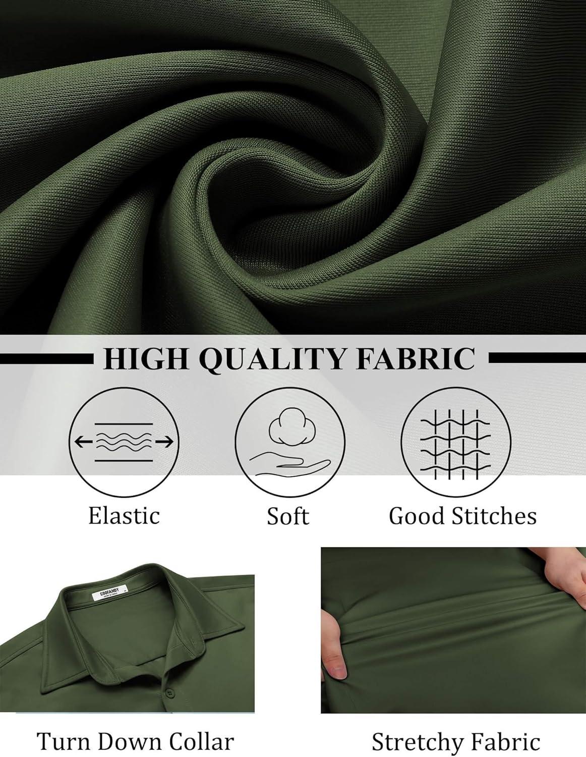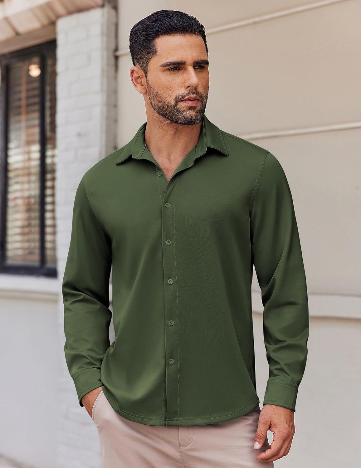 COOFANDY Mens Long Sleeve Button Down Shirts Casual Untucked Shirts Stretch Shirts(Olive Green)