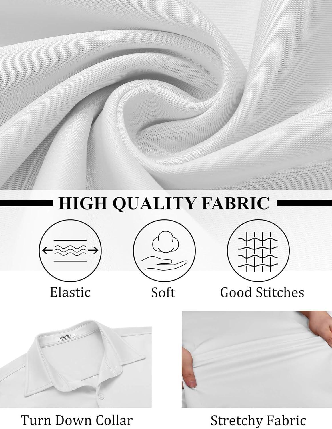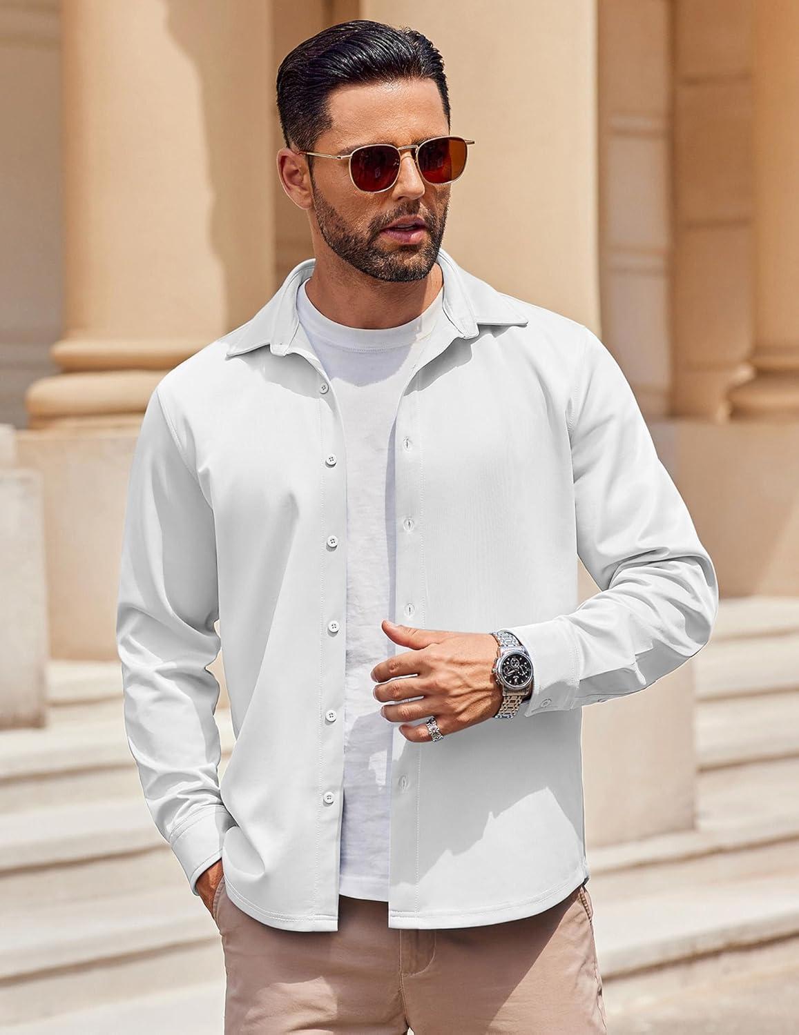 COOFANDY Mens Long Sleeve Button Down Shirts Casual Untucked Shirts Stretch Shirts(White)
