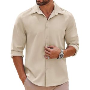 COOFANDY Mens Long Sleeve Button Down Shirts Casual Untucked Shirts for Men Dress Shirts Beach Wedding Shirts(Beige)