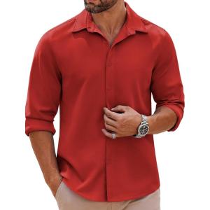 COOFANDY Mens Long Sleeve Button Down Shirts Casual Untucked Shirts Stretch Shirts(Red)
