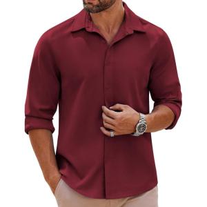 COOFANDY Mens Long Sleeve Button Down Shirts Casual Untucked Shirts for Men Dress Shirts Beach Wedding Shirts(Burgundy)