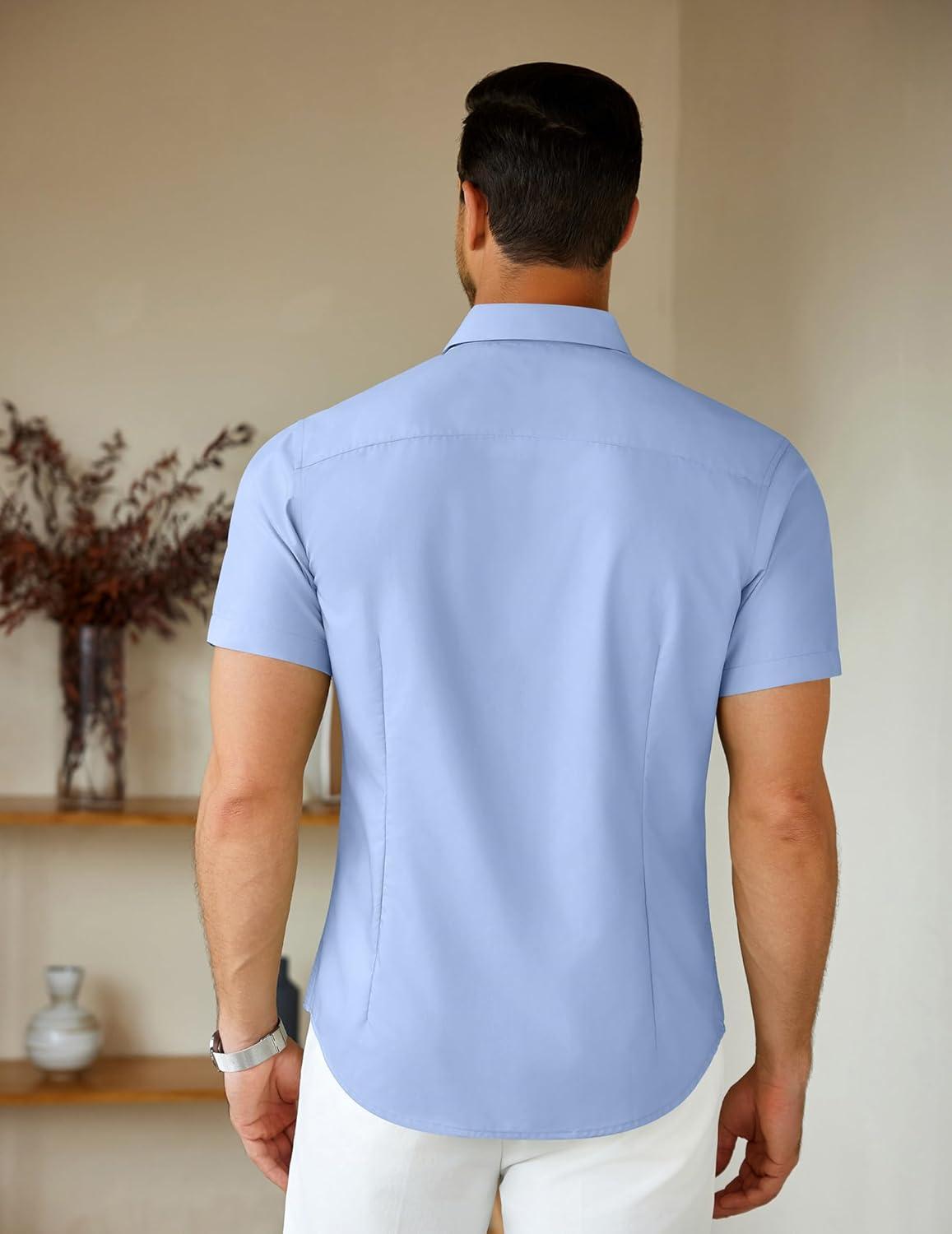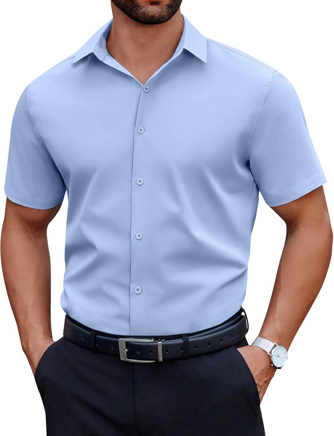 COOFANDY Men’s Short Sleeve Dress Shirts Casual Button Down Wrinkle Free Regular Fit Business Untucked Shirts(Angel Falls)
