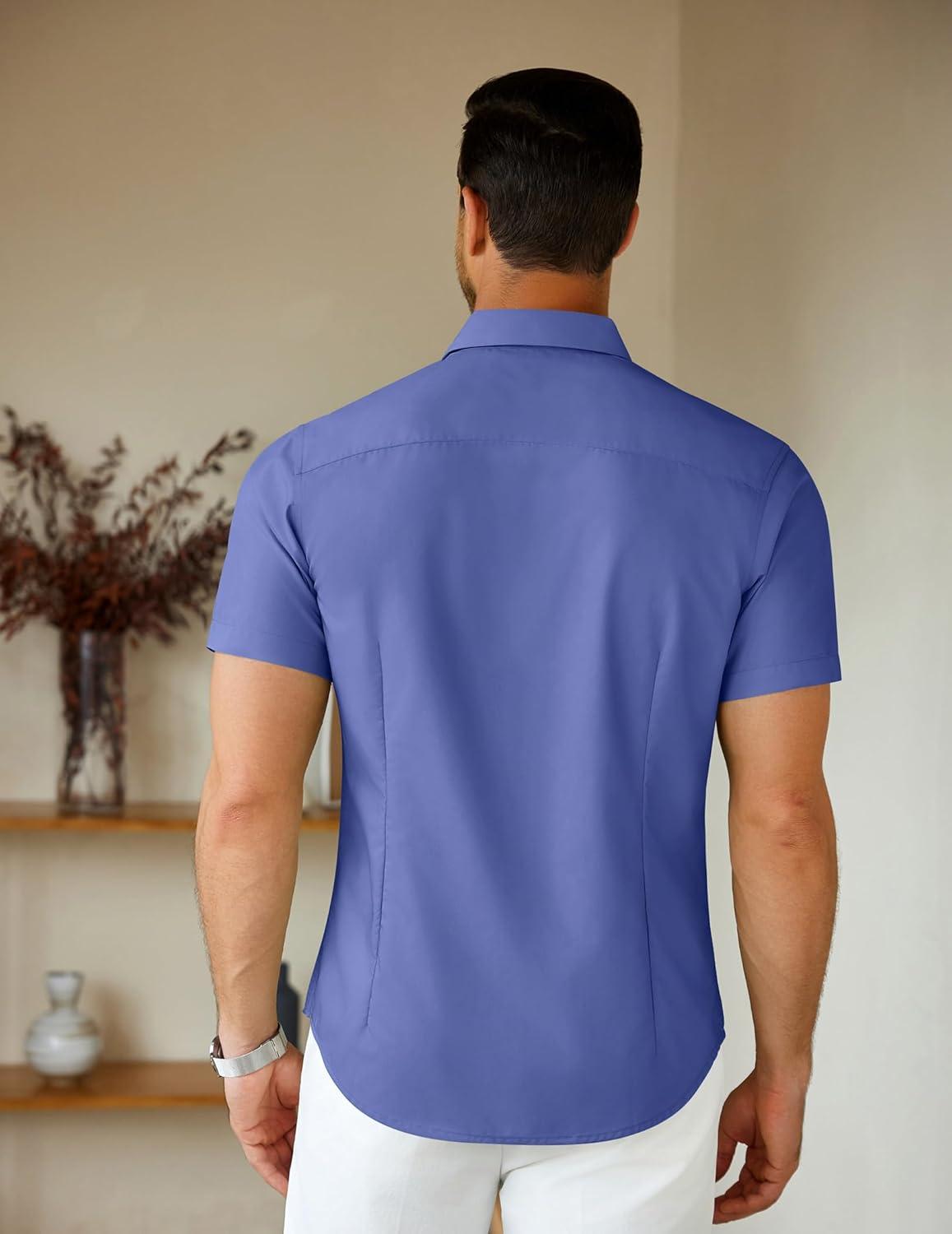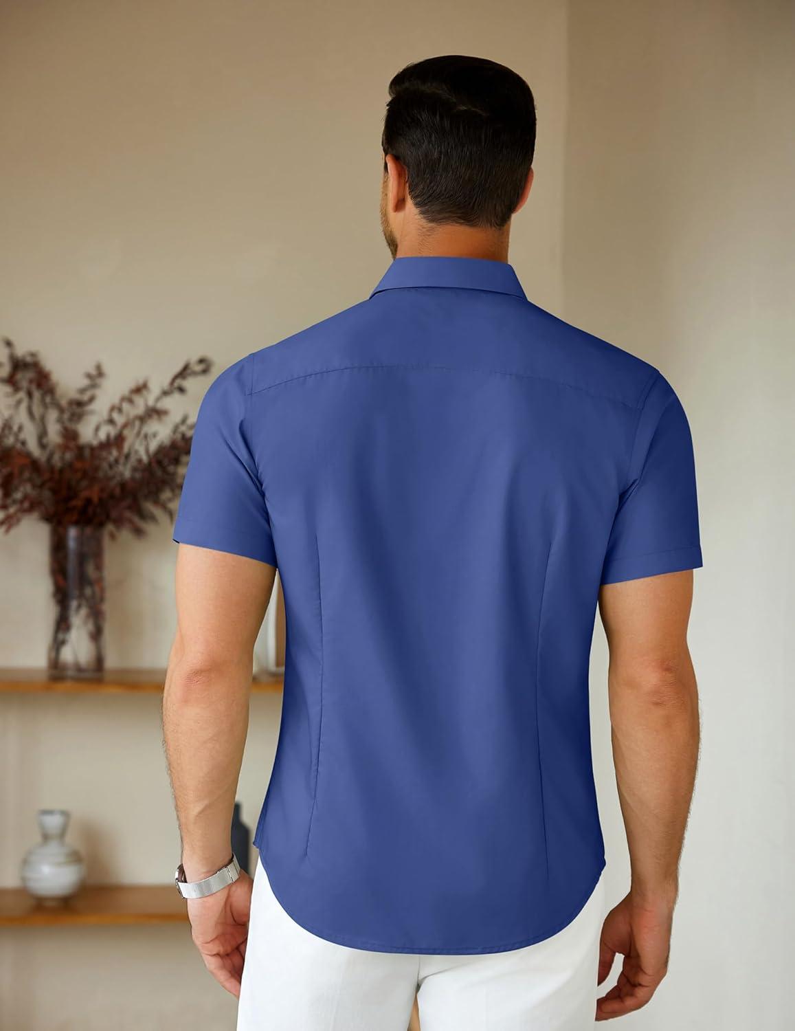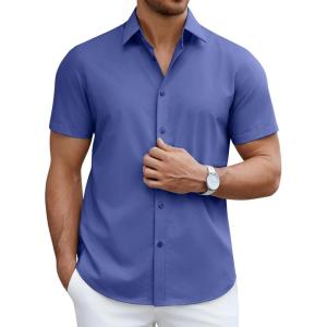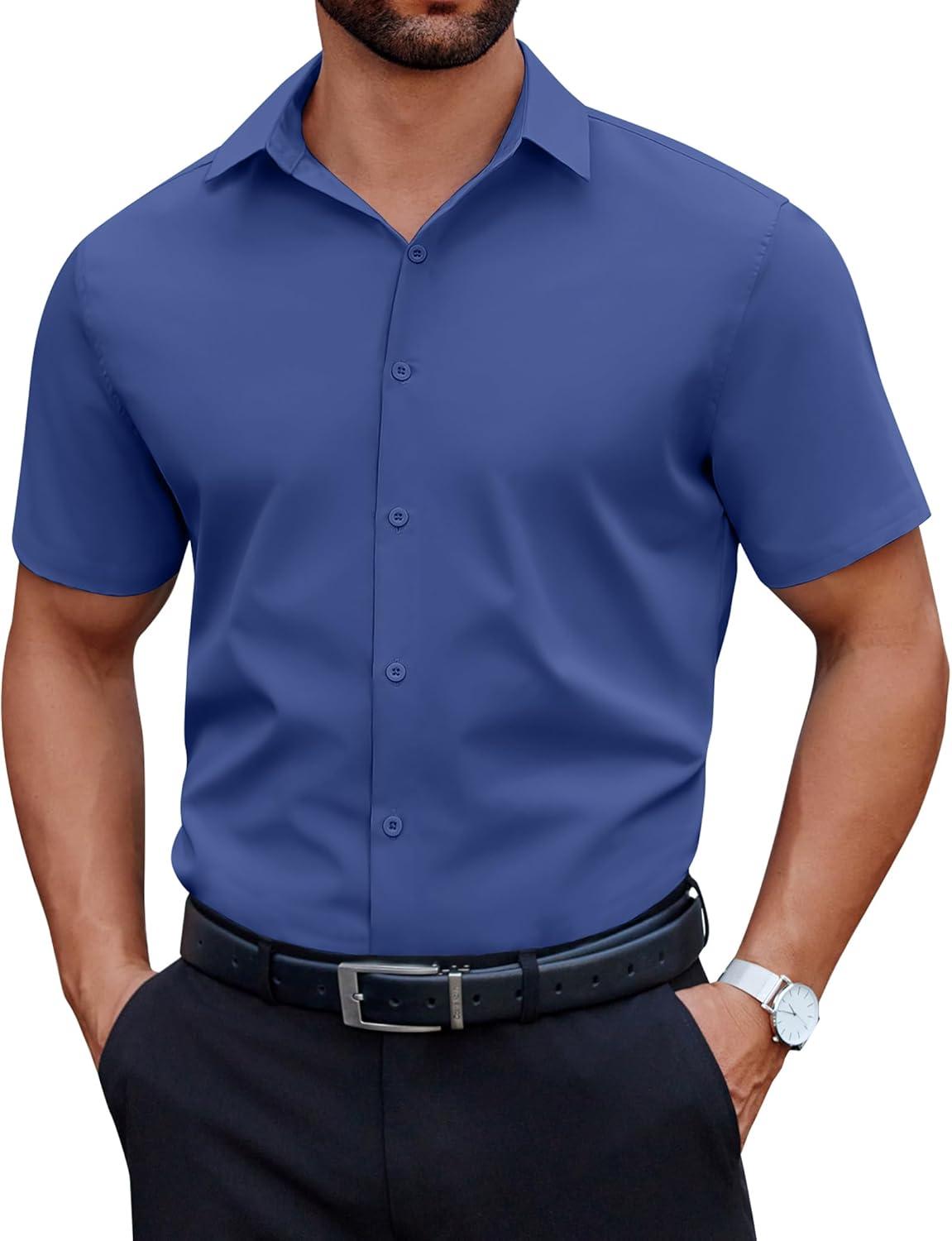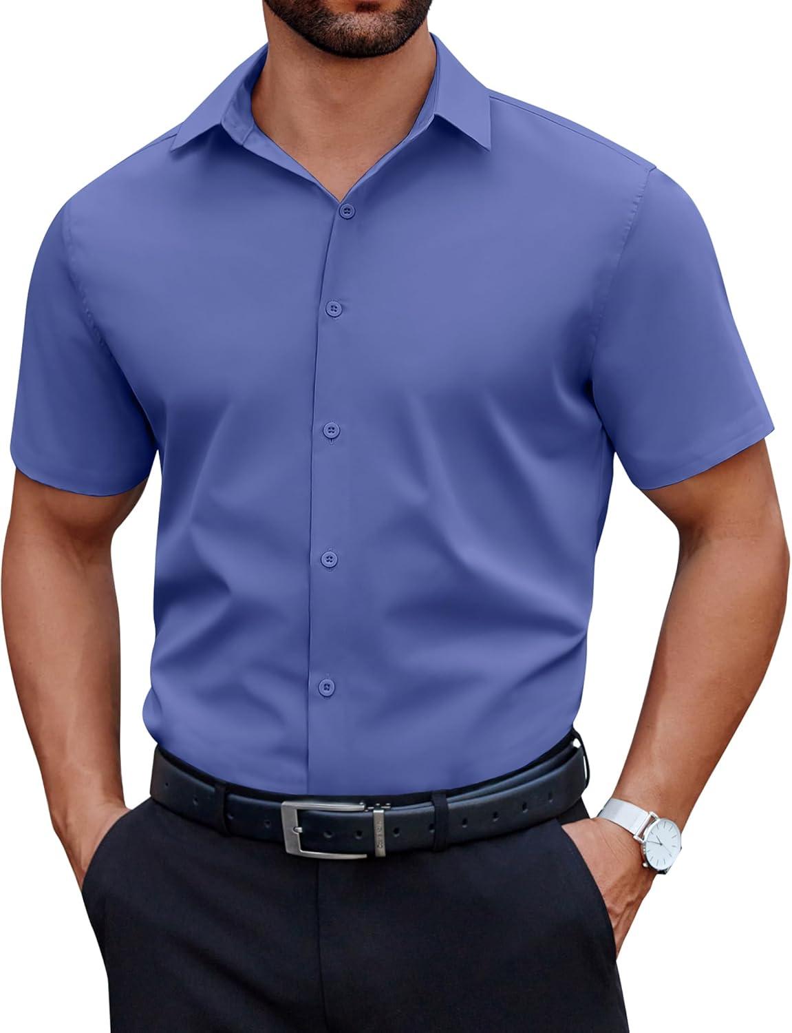 COOFANDY Men’s Short Sleeve Dress Shirts Casual Button Down Wrinkle Free Regular Fit Business Untucked Shirts(Crown Jewel)