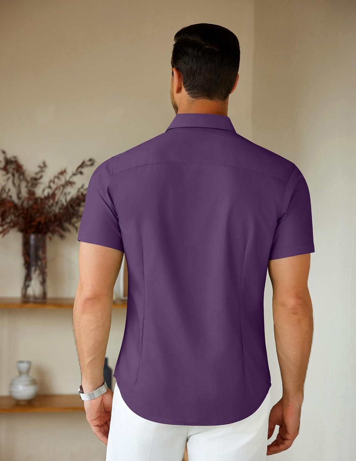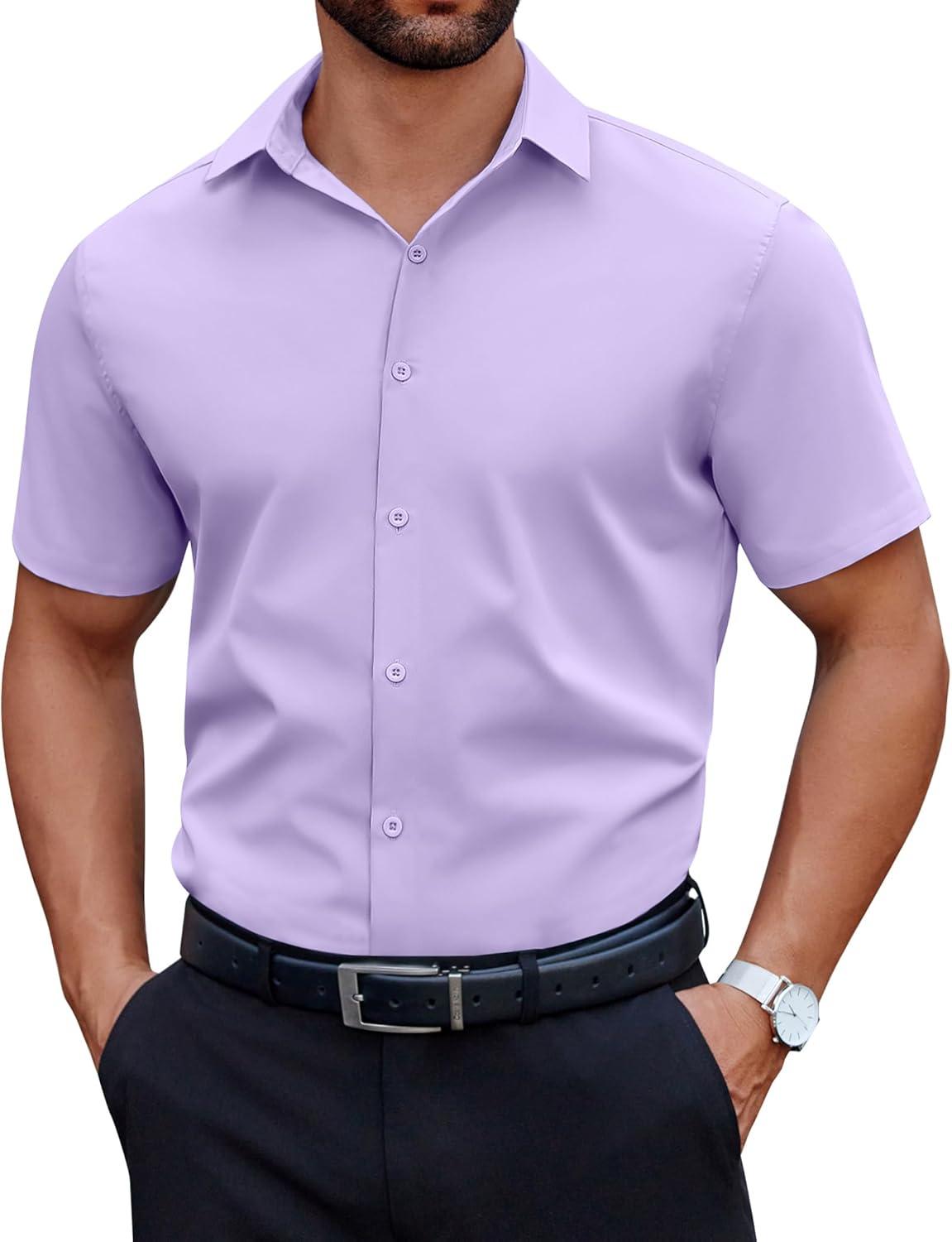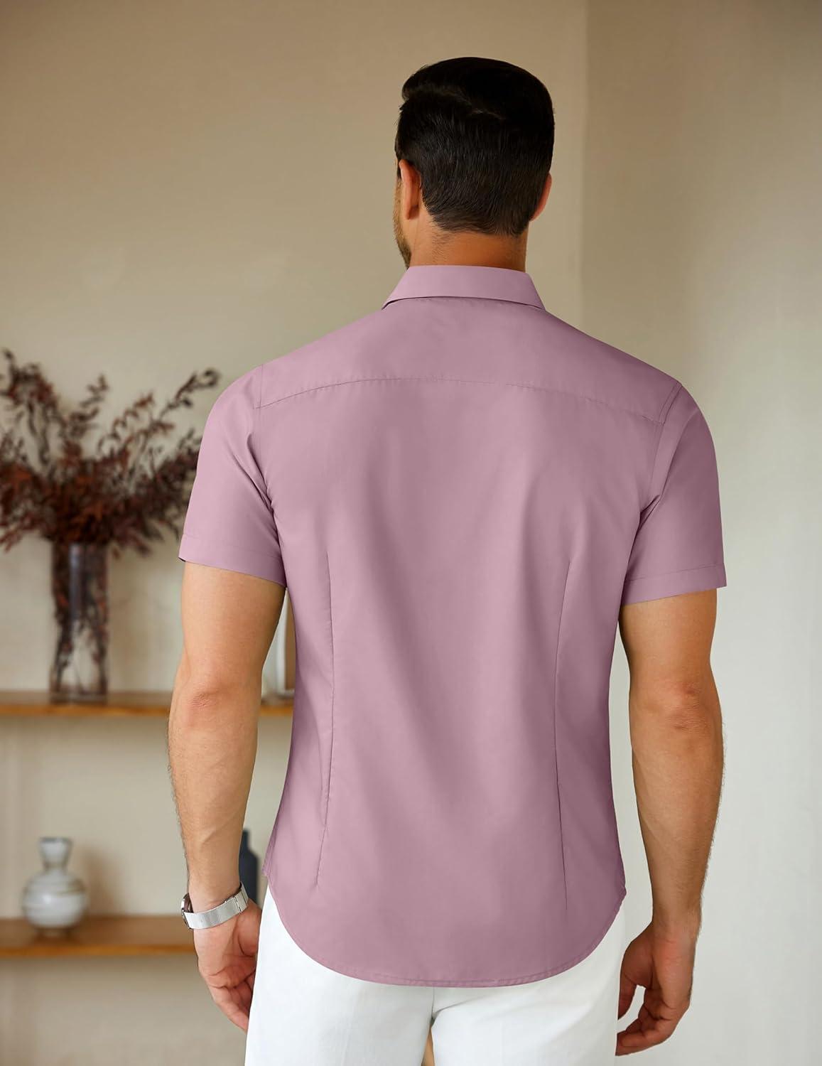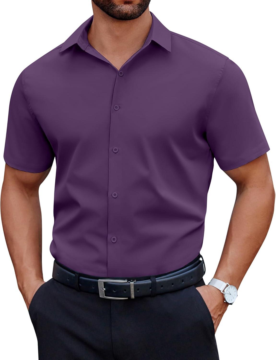 COOFANDY Men’s Short Sleeve Dress Shirts Casual Button Down Wrinkle Free Regular Fit Business Untucked Shirts(Purple Rose)
