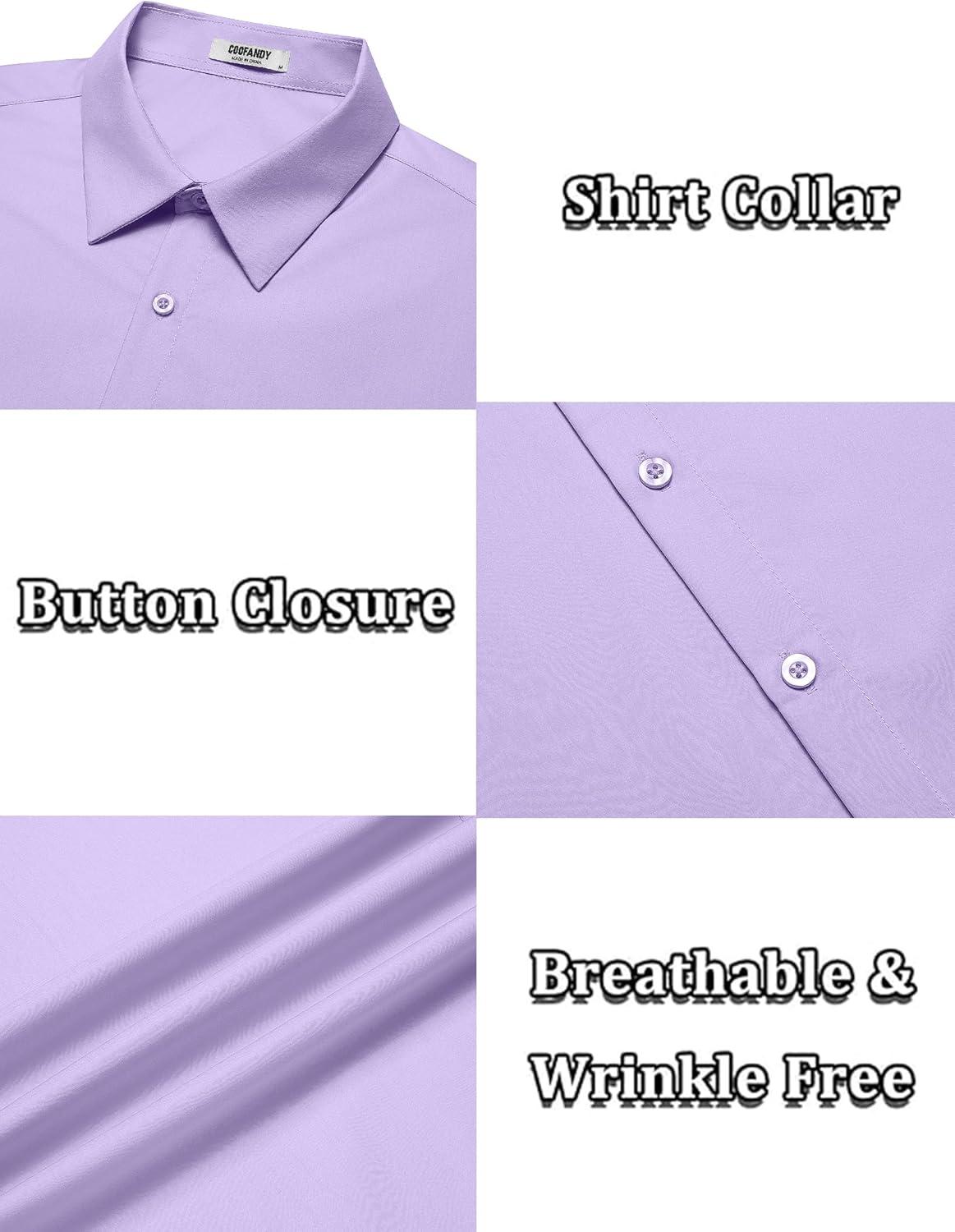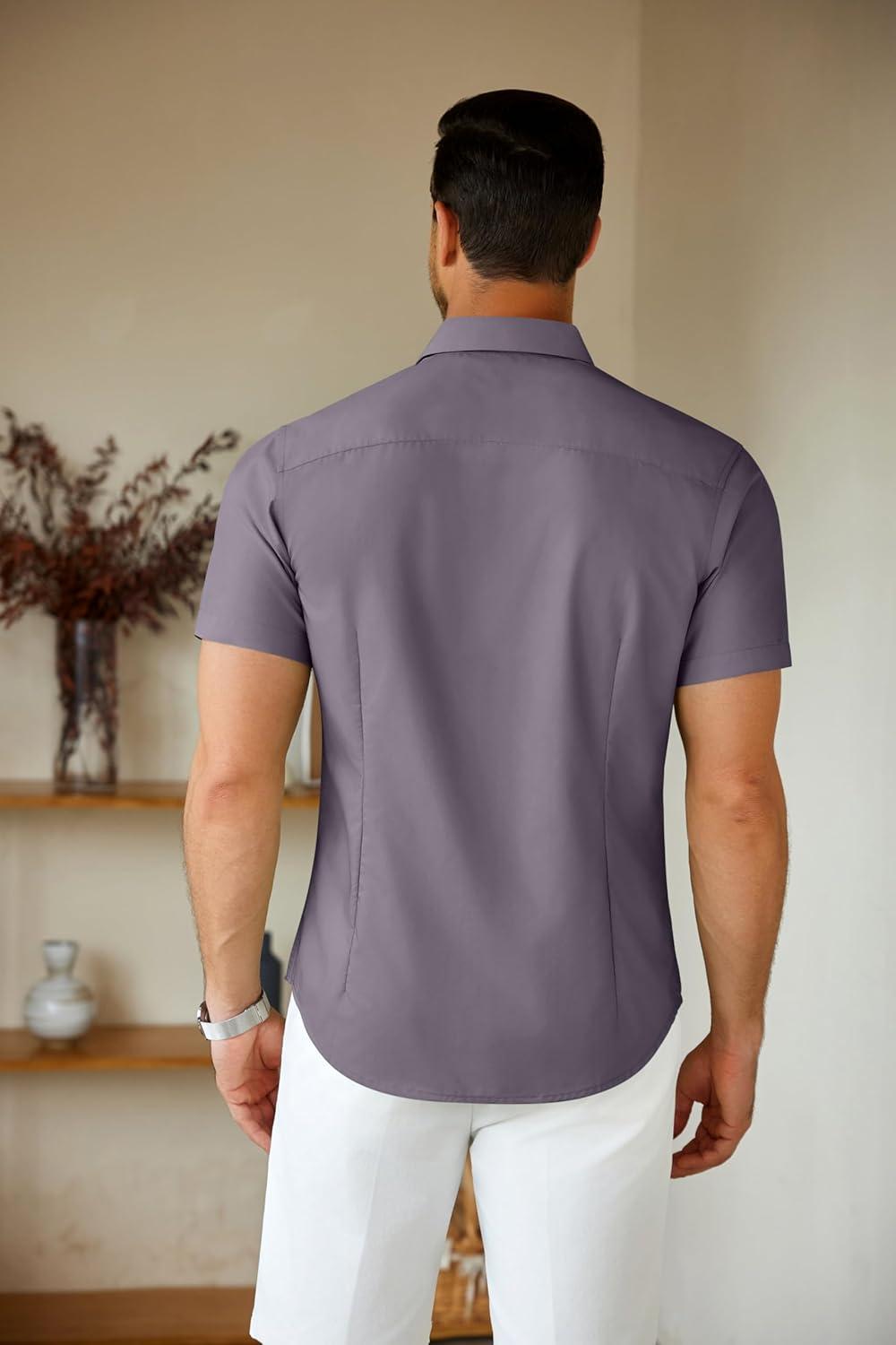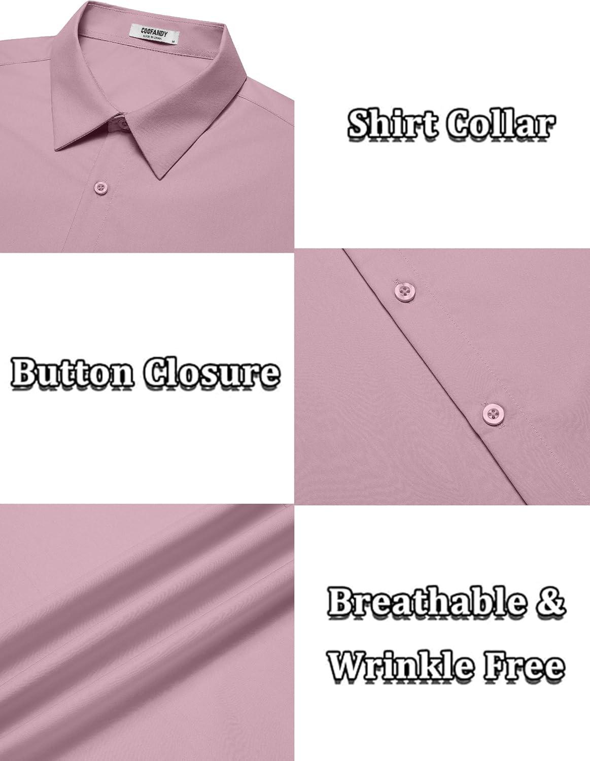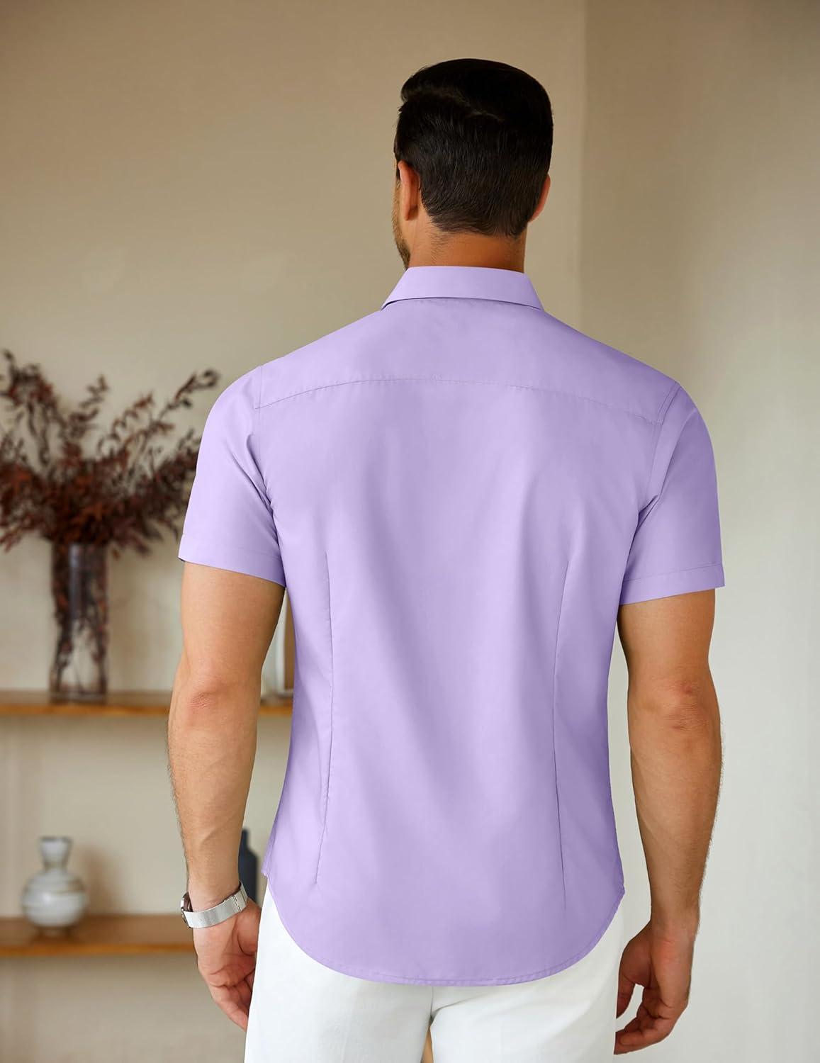 COOFANDY Men’s Short Sleeve Dress Shirts Casual Button Down Wrinkle Free Regular Fit Business Untucked Shirts(Purple Rose)