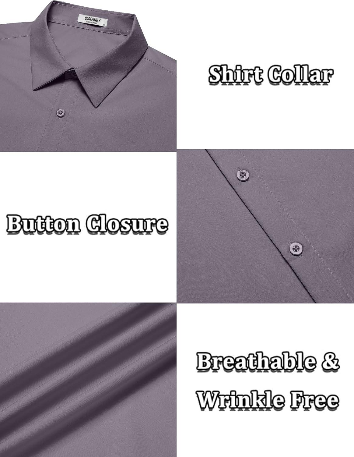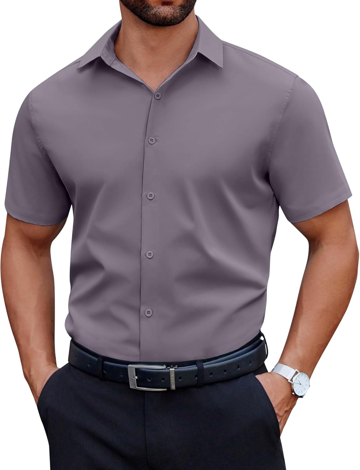 COOFANDY Men’s Short Sleeve Dress Shirts Casual Button Down Wrinkle Free Regular Fit Business Untucked Shirts(Granite Gray)