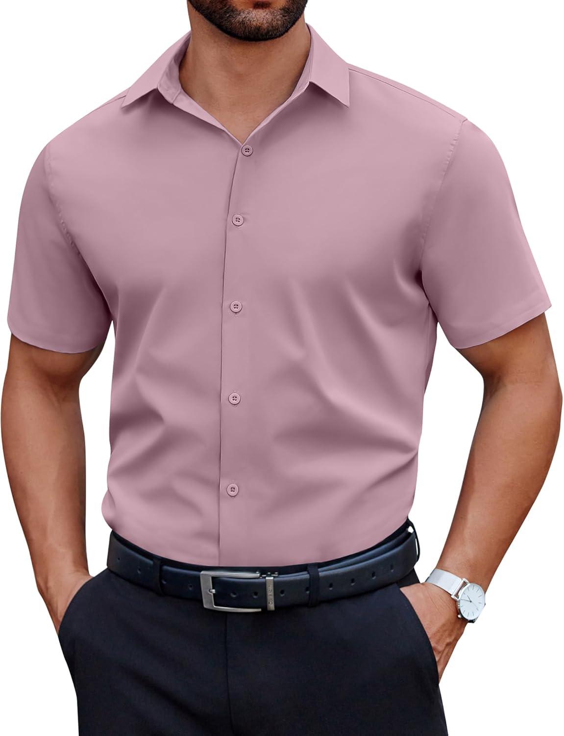 COOFANDY Men’s Short Sleeve Dress Shirts Casual Button Down Wrinkle Free Regular Fit Business Untucked Shirts(Misty Rose)