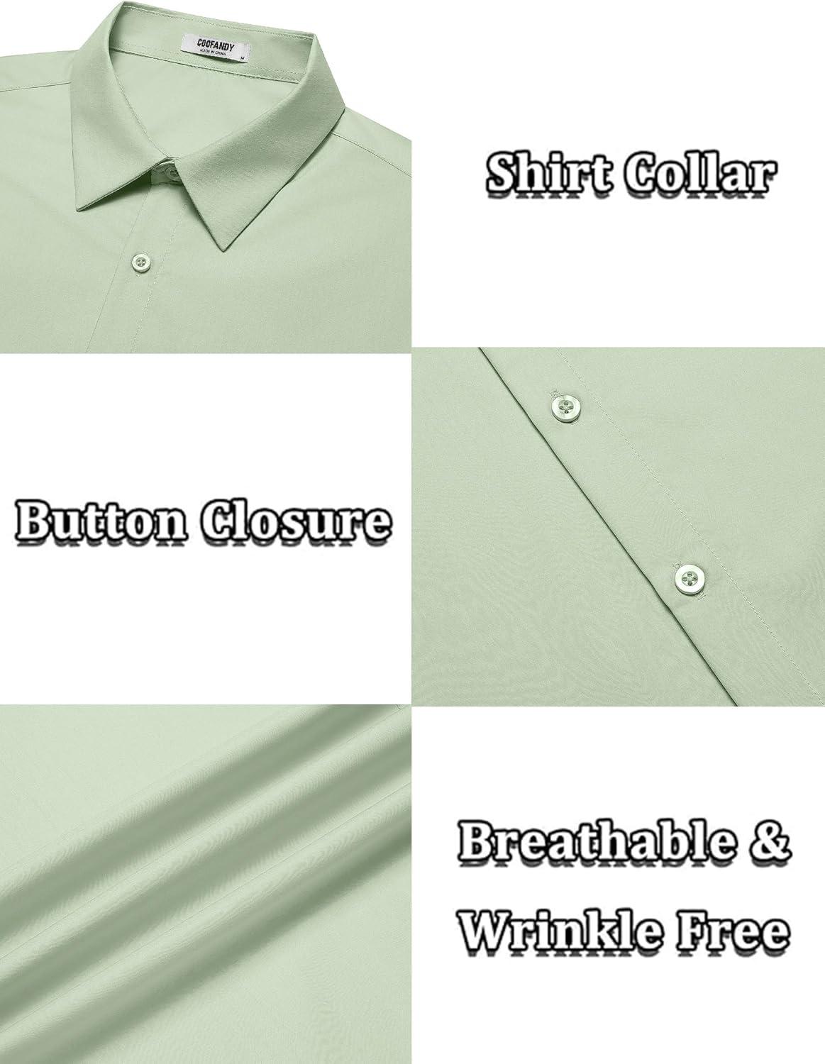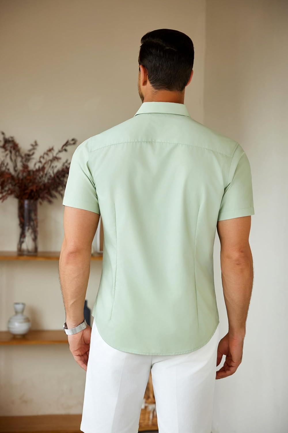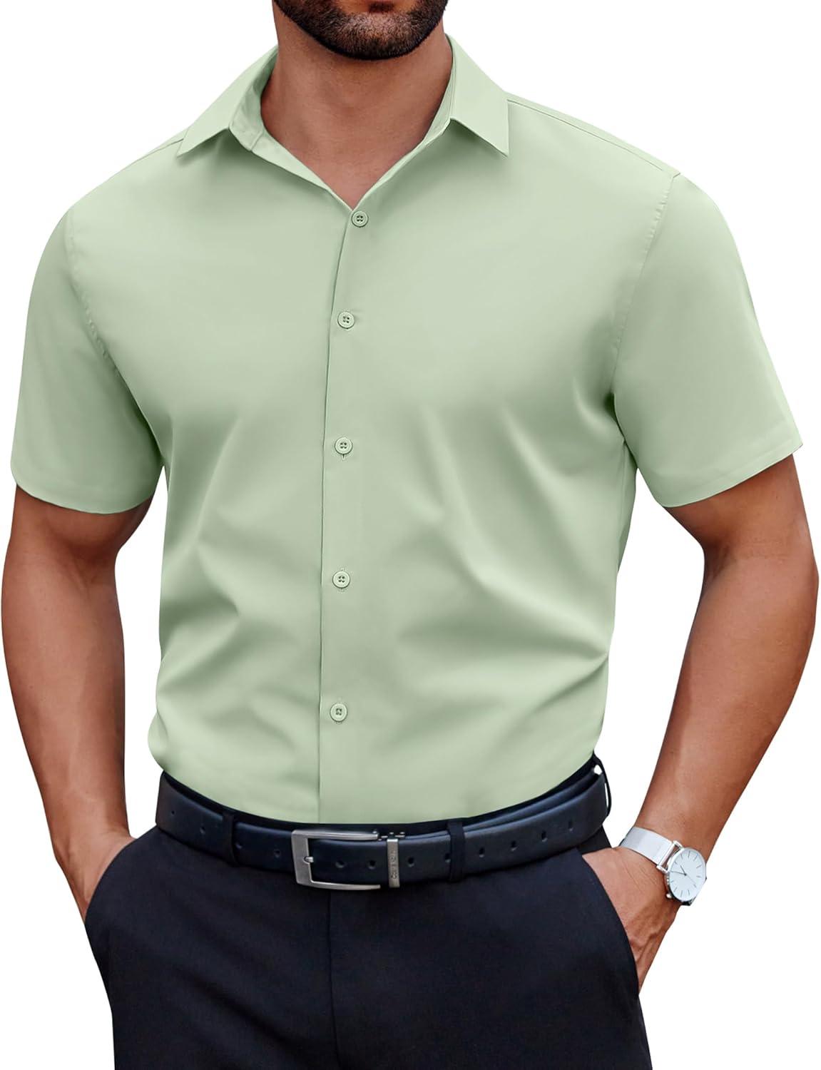 COOFANDY Men’s Short Sleeve Dress Shirts Casual Button Down Wrinkle Free Regular Fit Business Untucked Shirts(Sea Foam)