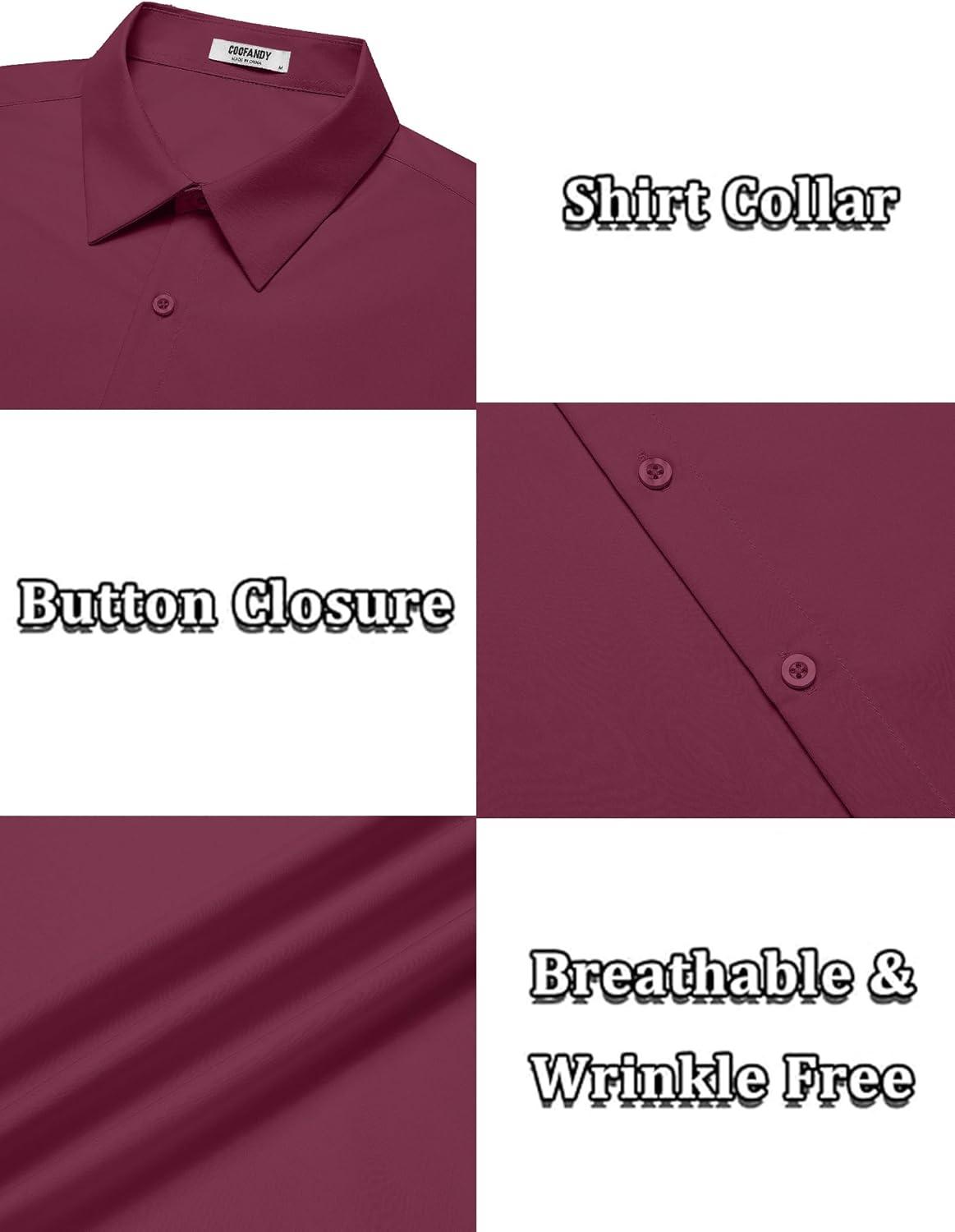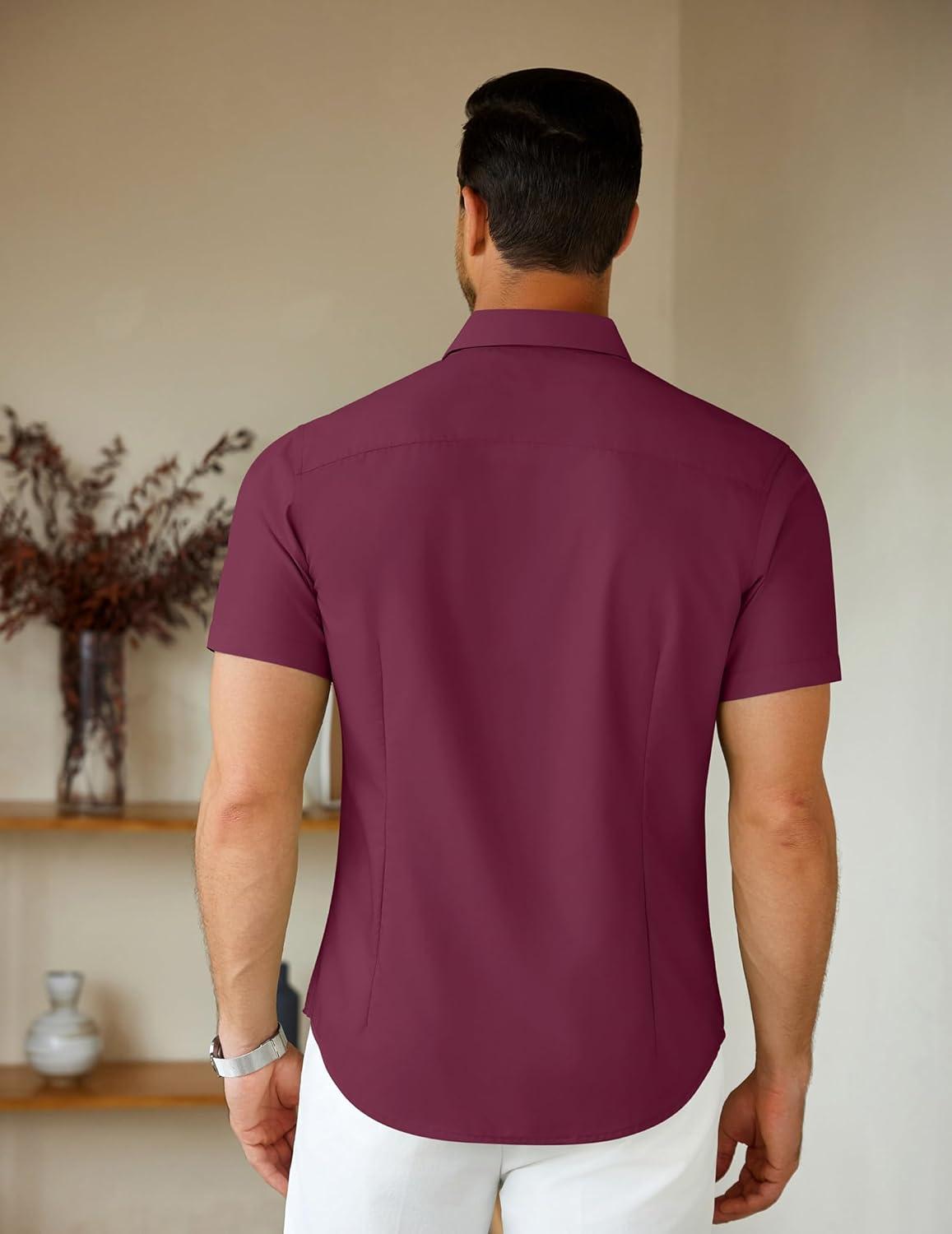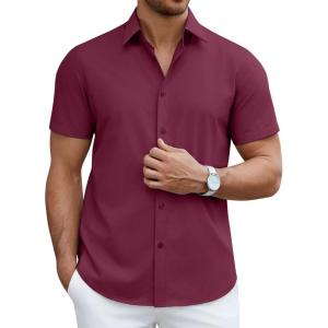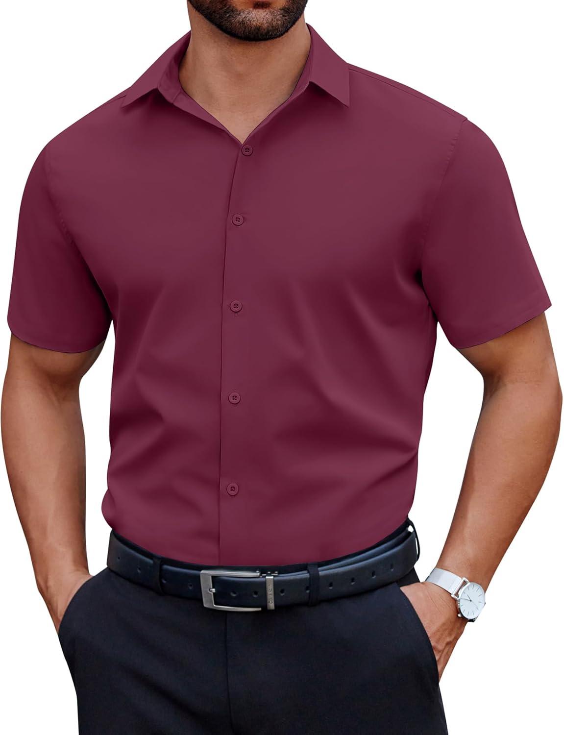 COOFANDY Men’s Short Sleeve Dress Shirts Stain Shield Button Down Shirt for Summer Business Wedding Party(Wine Red)