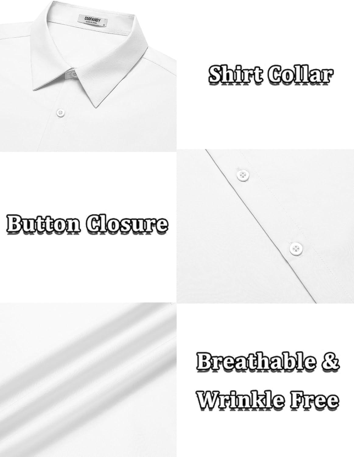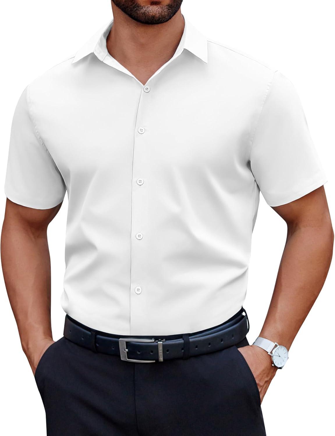 COOFANDY Men’s Short Sleeve Dress Shirts Casual Button Down Wrinkle Free Regular Fit Business Untucked Shirts(White)