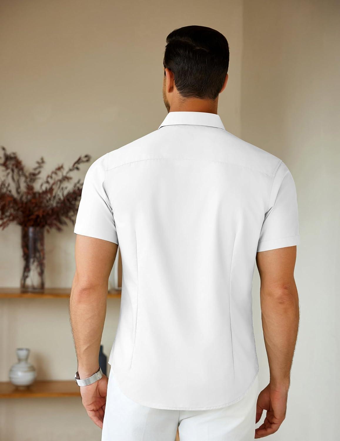 COOFANDY Men’s Short Sleeve Dress Shirts Stain Shield Button Down Shirt for Summer Business Wedding Party(White)