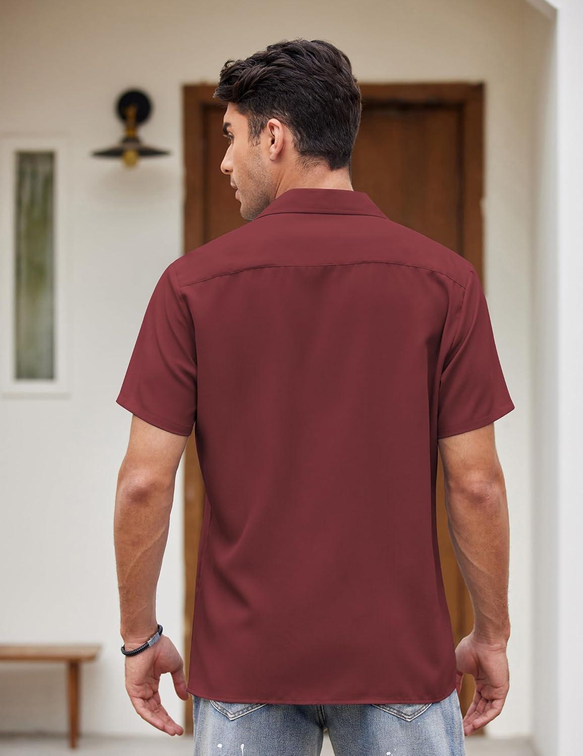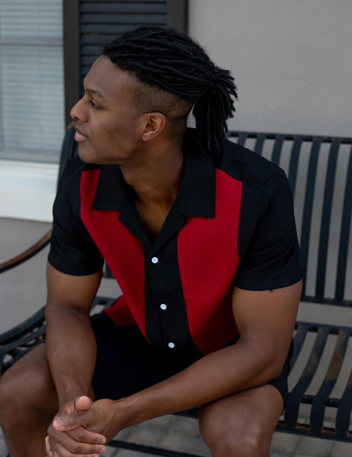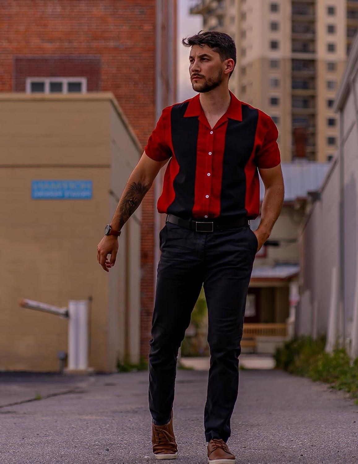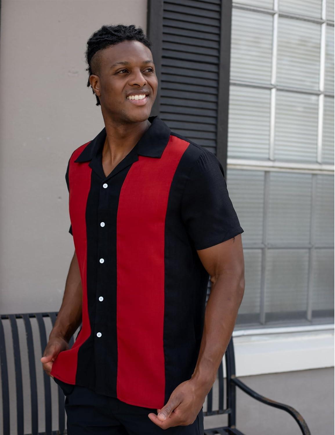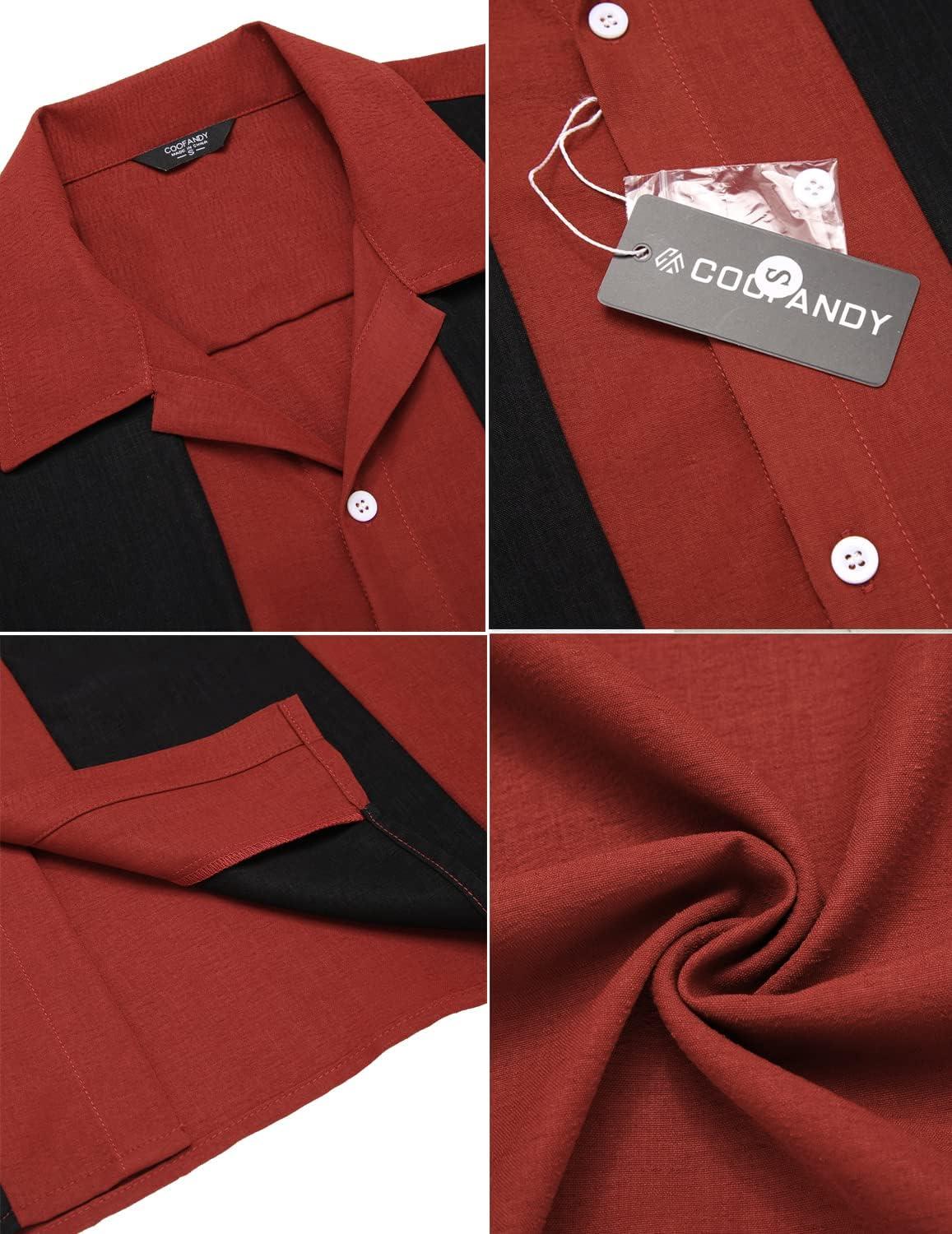 COOFANDY Men’s Vintage Bowling Shirt Short Sleeve Button Down Summer Cuba Beach Shirts(Red Black)