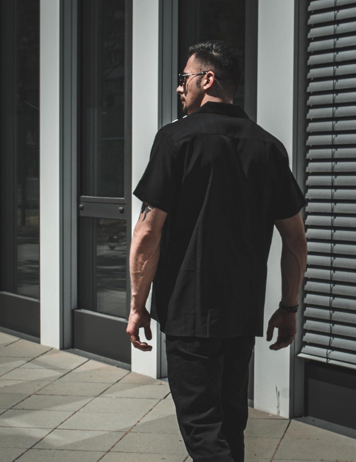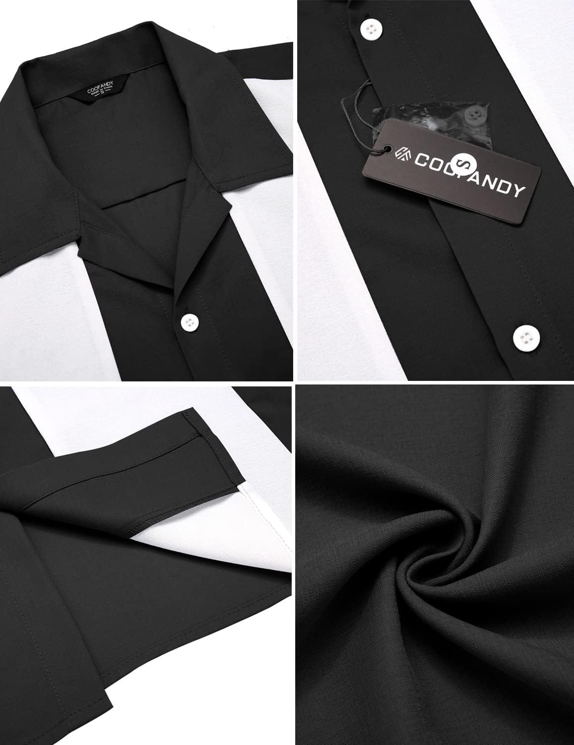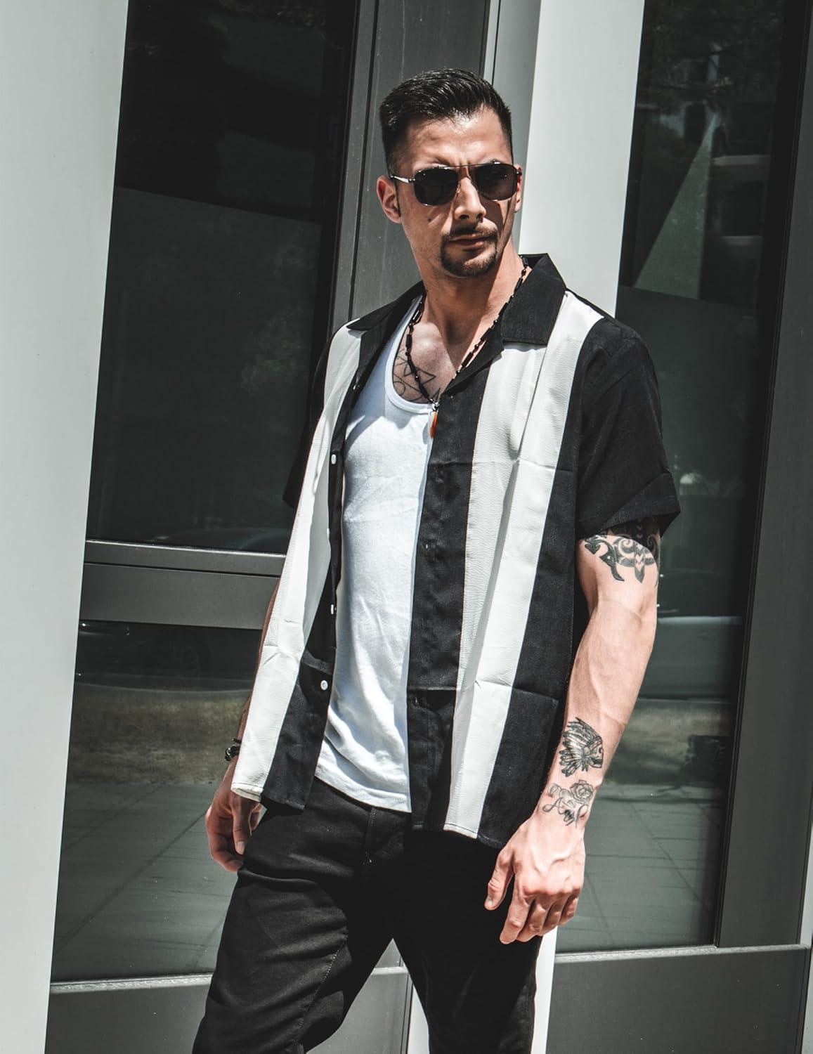 COOFANDY Men’s Vintage Bowling Shirt Short Sleeve Button Down Summer Cuba Beach Shirts(Black White)