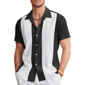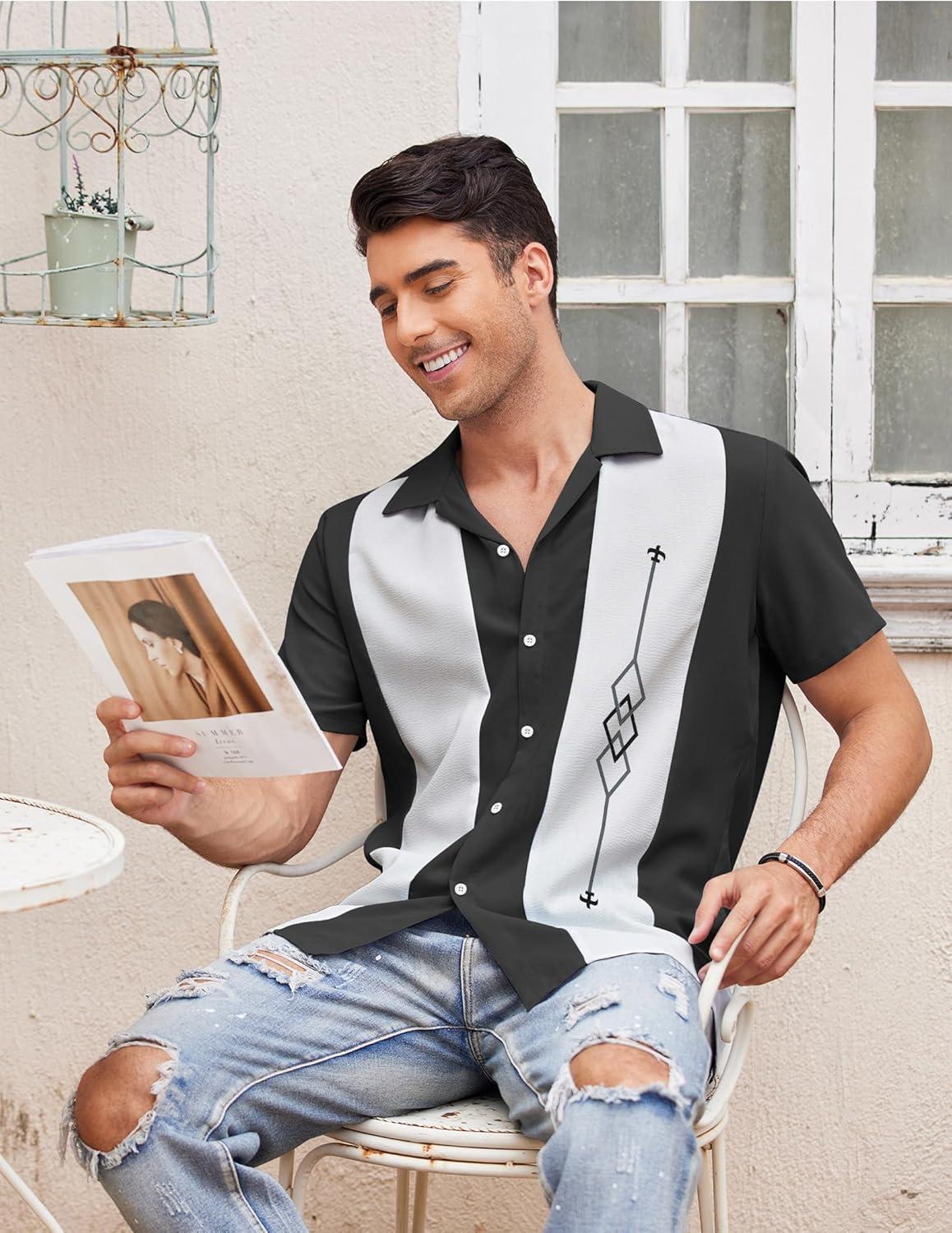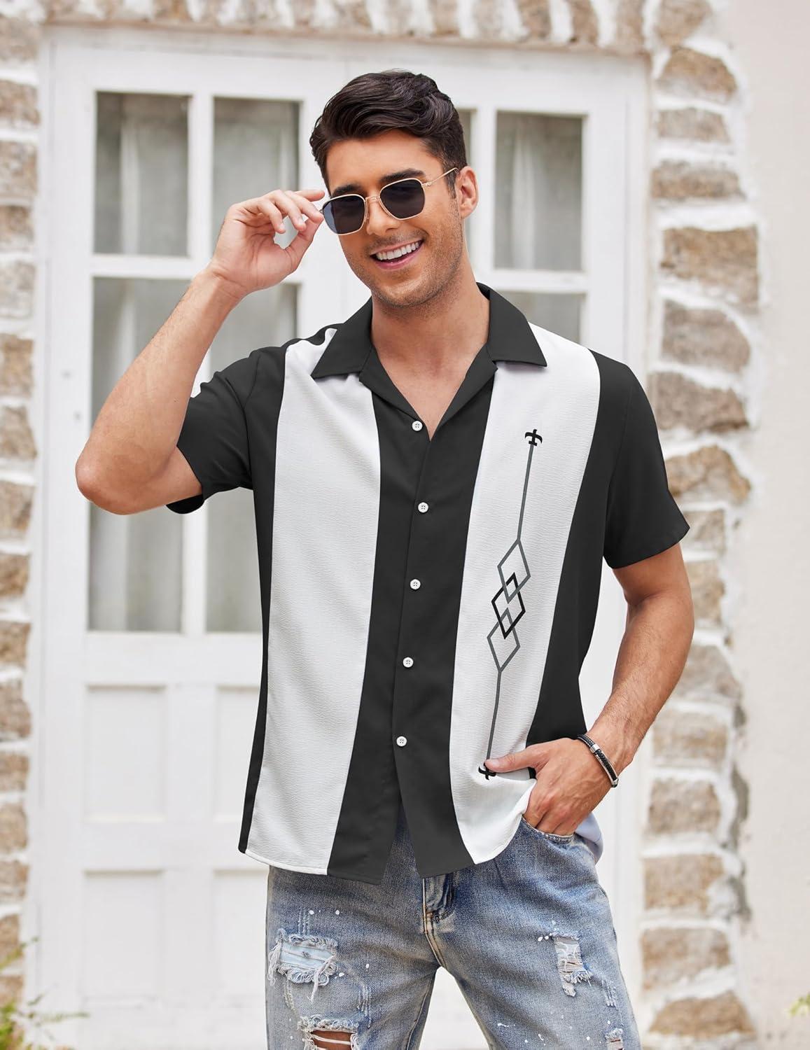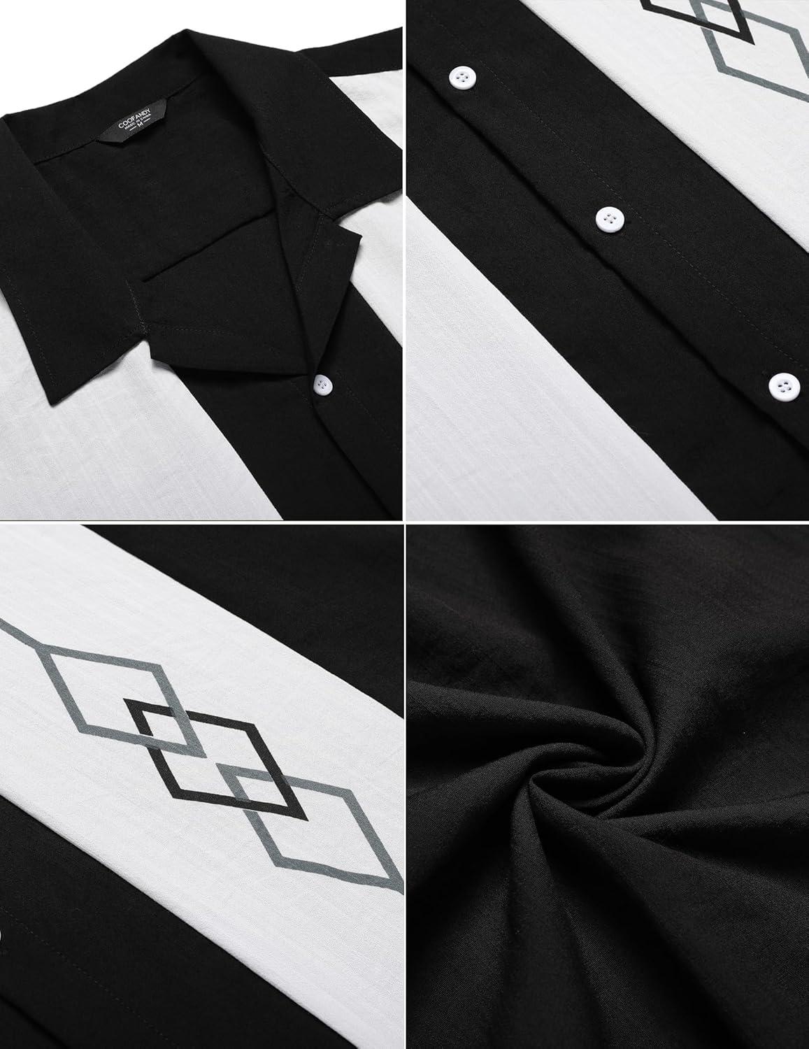 COOFANDY Men’s Vintage Bowling Shirt Short Sleeve Button Down Summer Cuba Beach Shirts(Bowling Black White)
