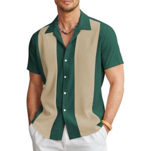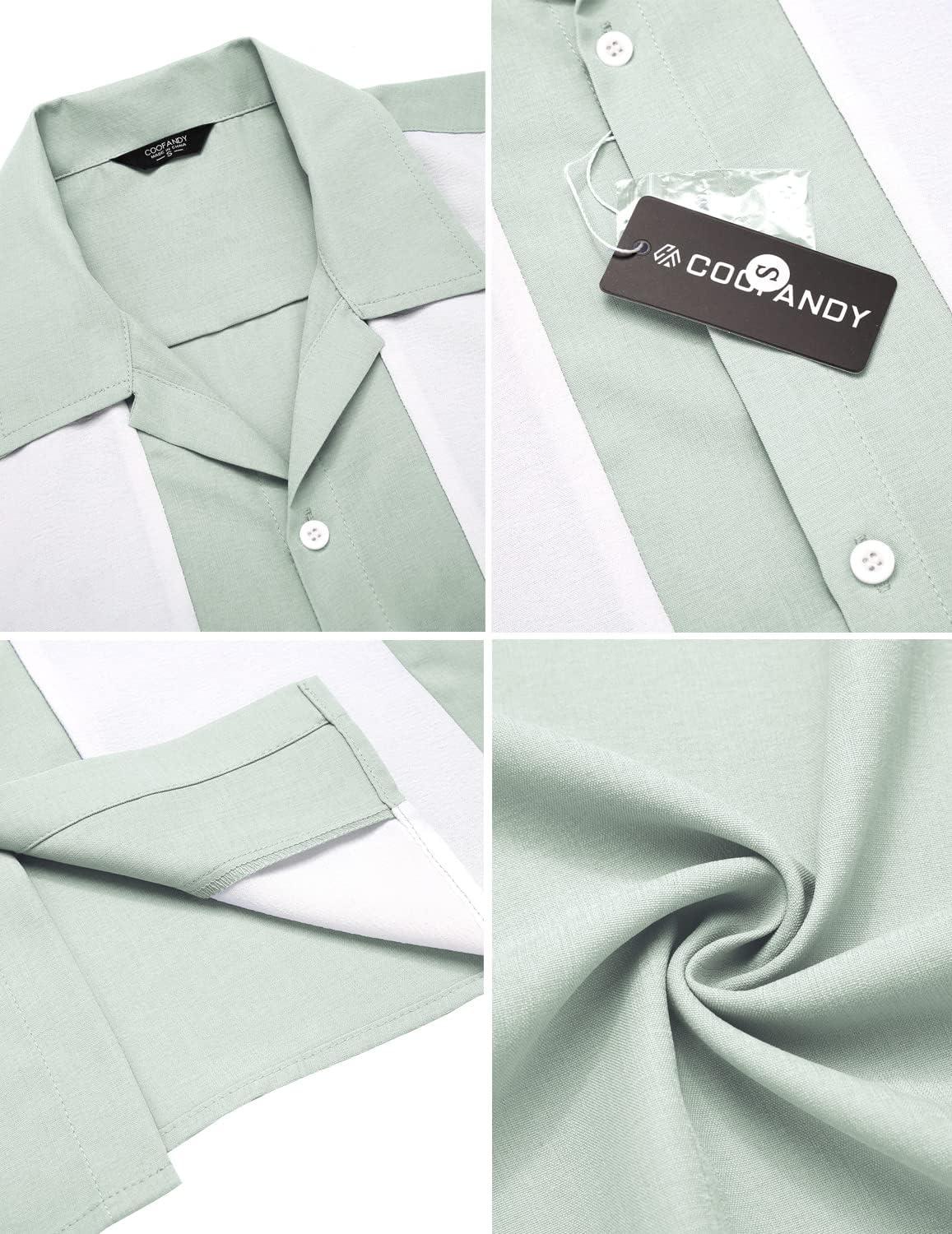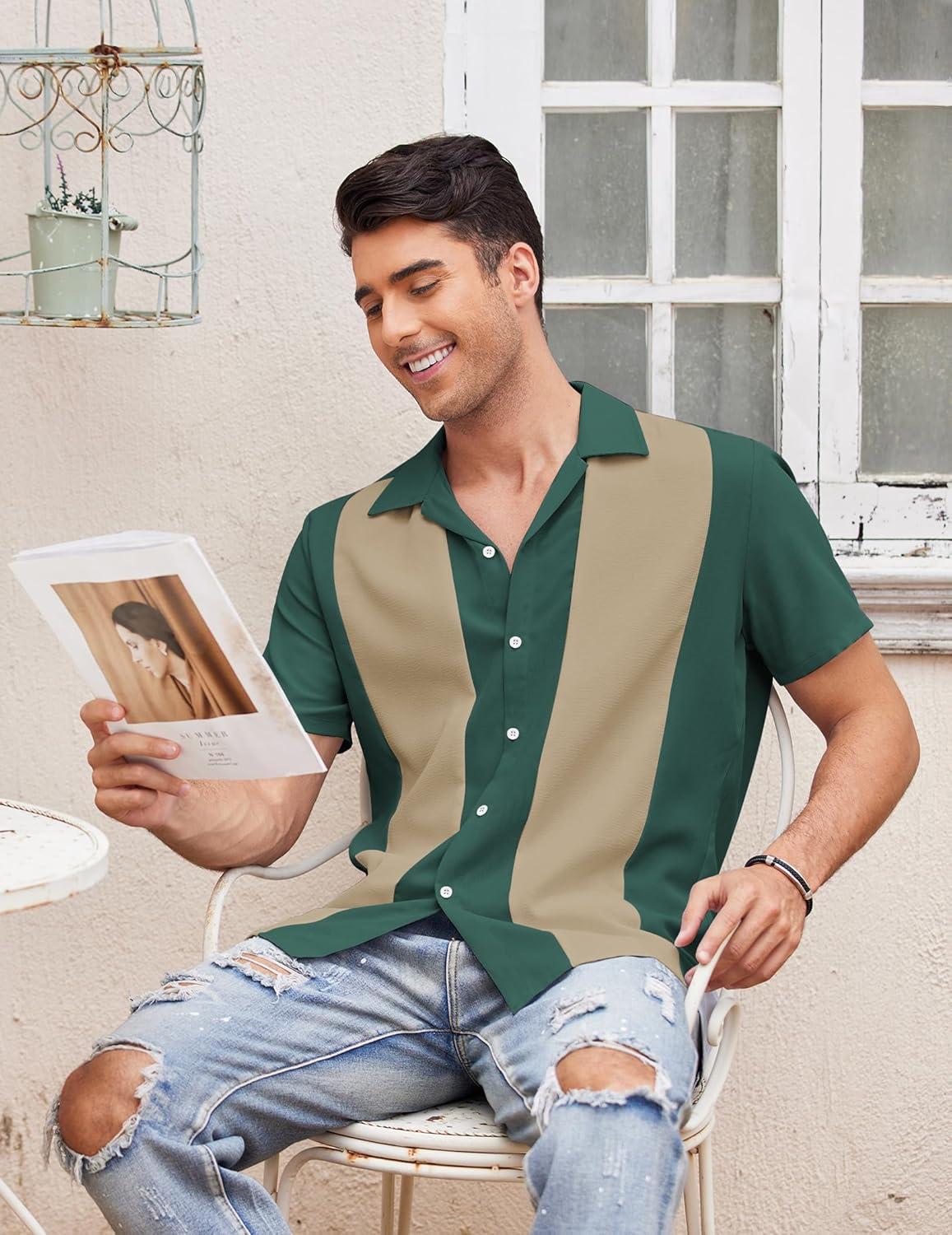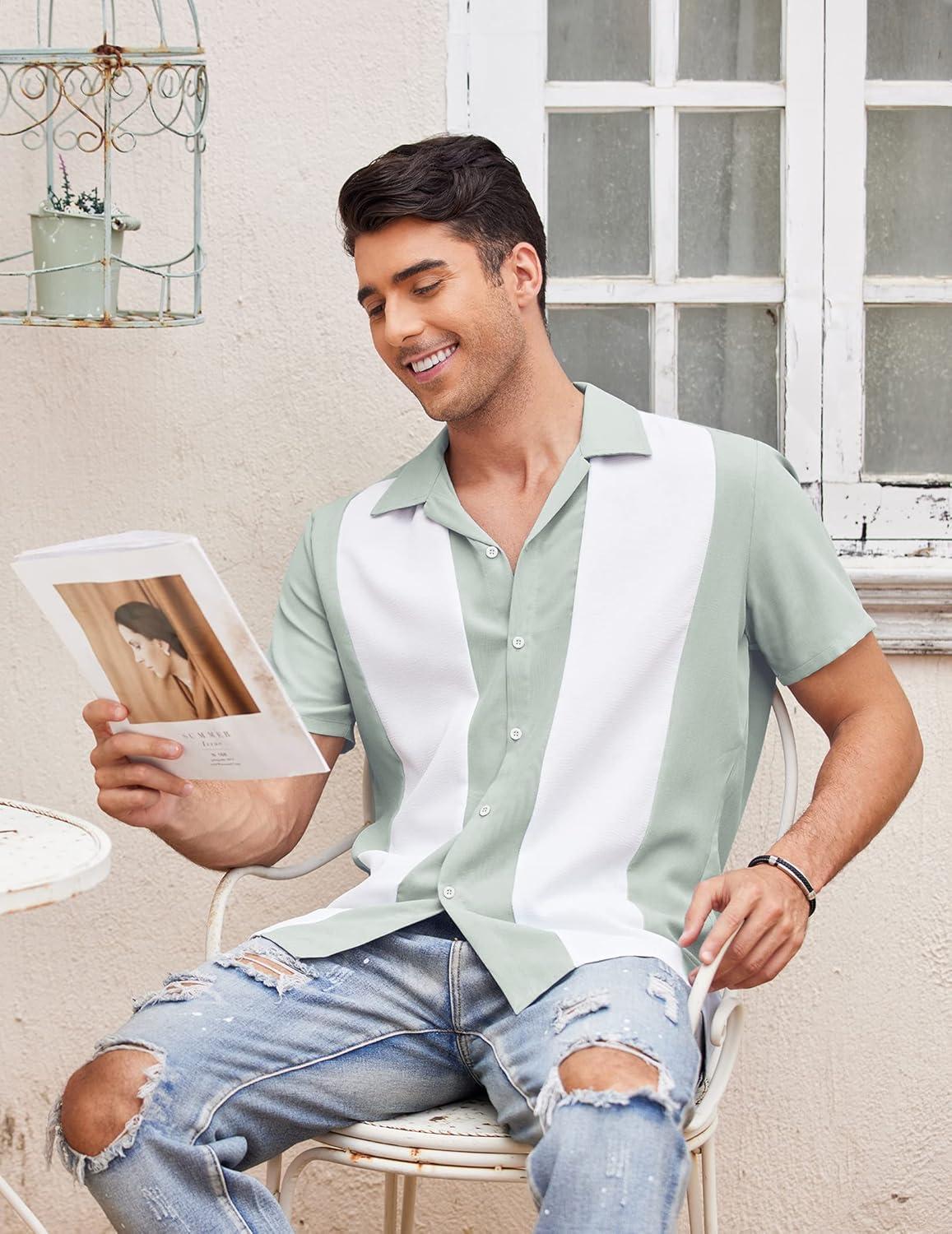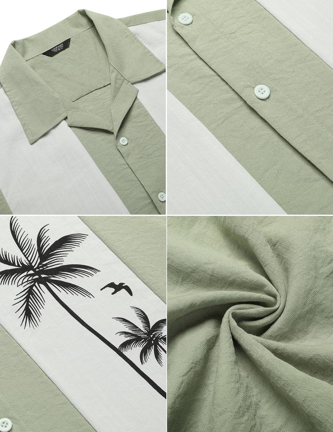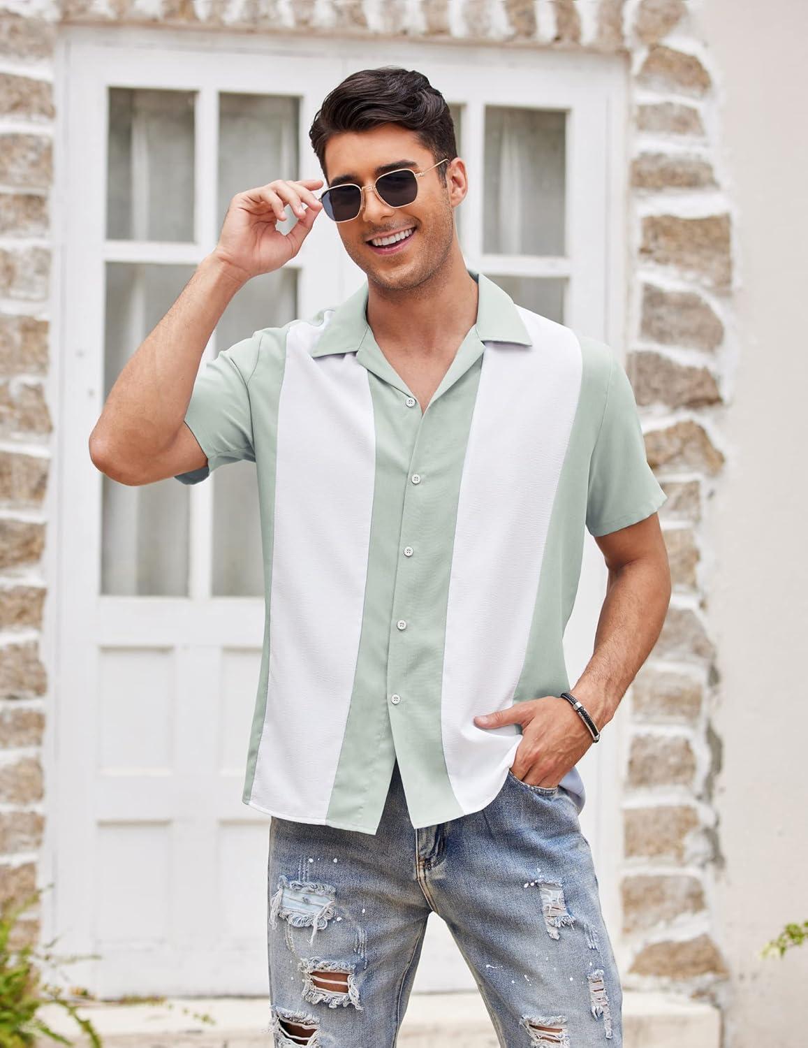 COOFANDY Men’s Vintage Bowling Shirt Short Sleeve Button Down Summer Cuba Beach Shirts(Green White)