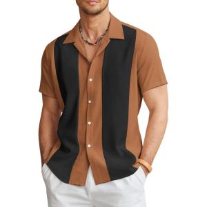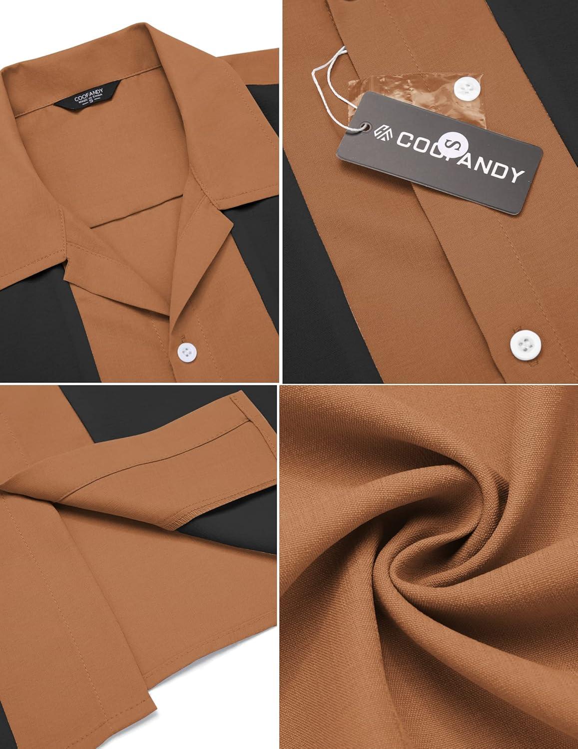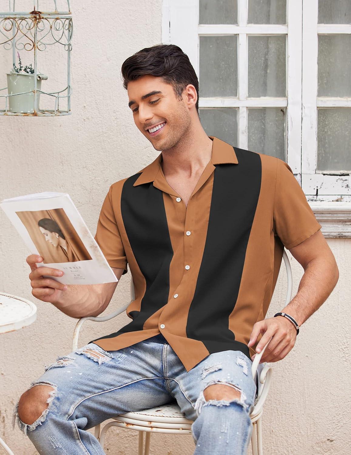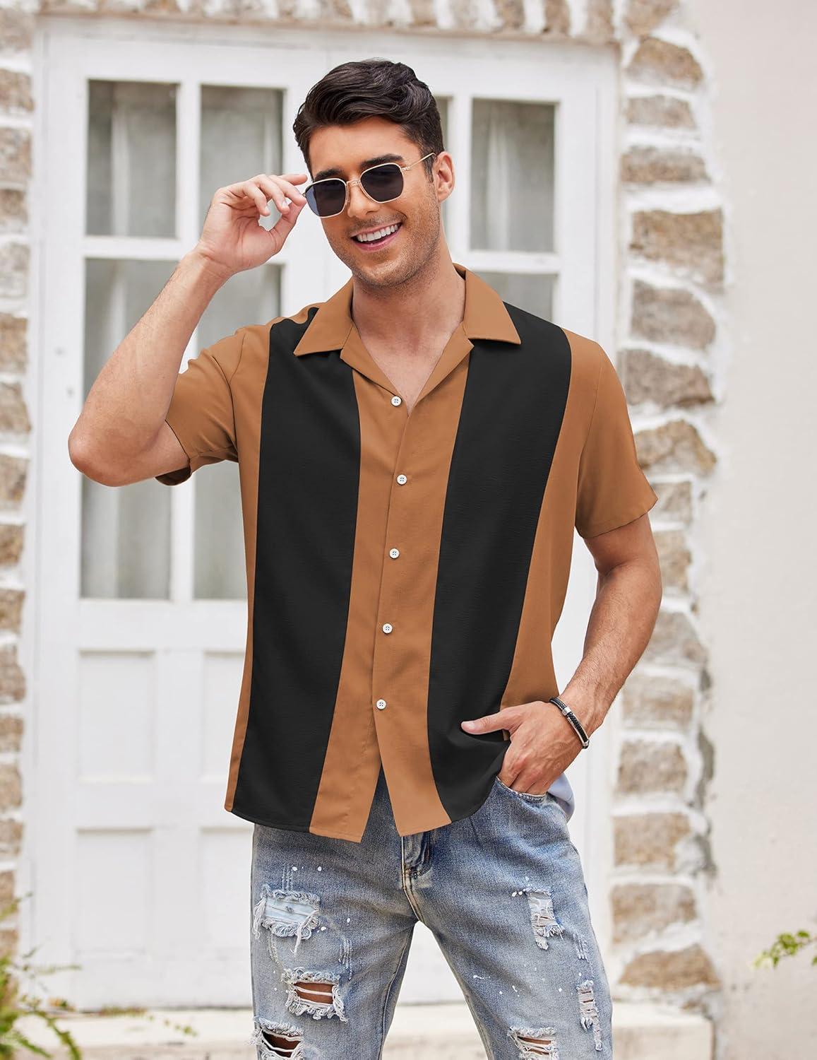 COOFANDY Men’s Vintage Bowling Shirt Short Sleeve Button Down Summer Cuba Beach Shirts(Brown Black)