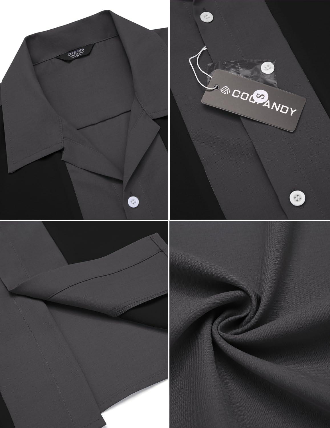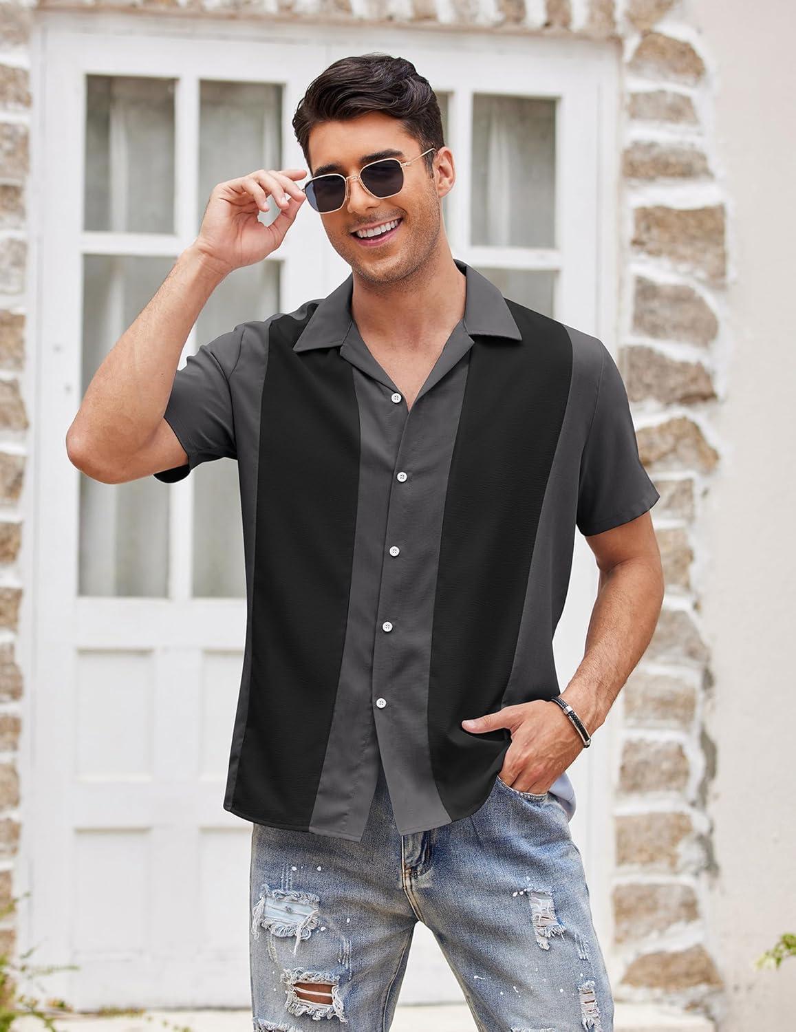 COOFANDY Men’s Vintage Bowling Shirt Short Sleeve Button Down Summer Cuba Beach Shirts(Dark Gray Black)